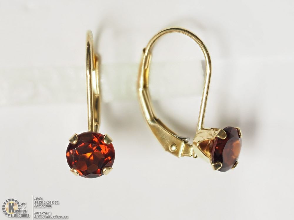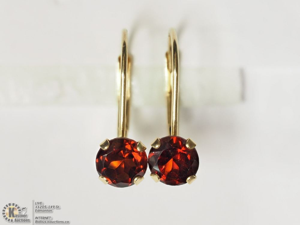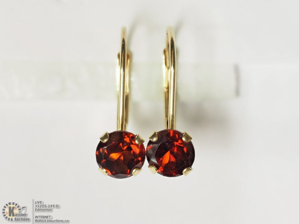 (#18- NN3):14KT YELLOW GOLD GARNET EARRINGS