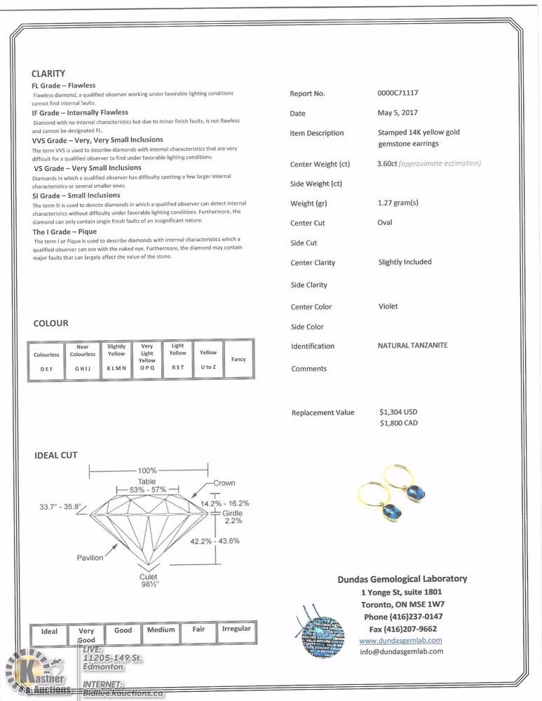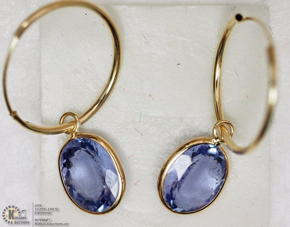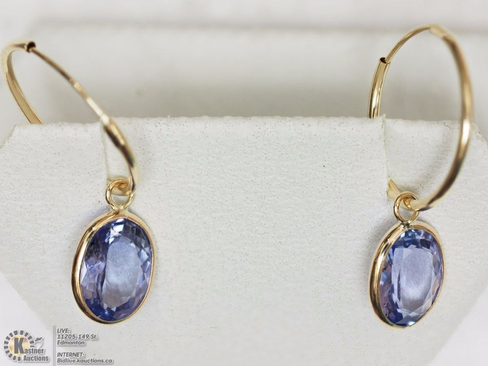 27 - BA10; 14KT YELLOW GOLD TANZANITE (3.60CT)HOOP EARRINGS W/ COA - SUGGESTED REPLACEMENT VALUE $1,800.00