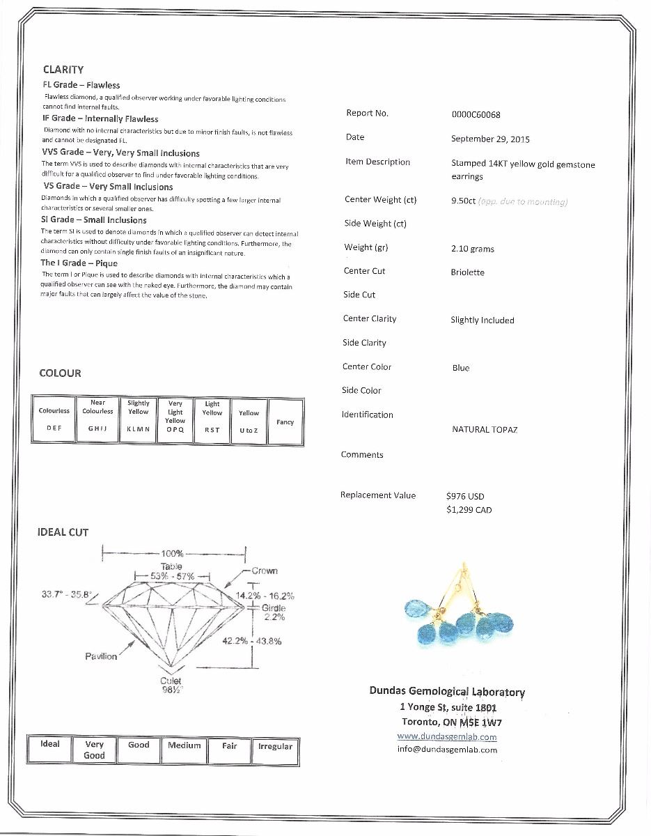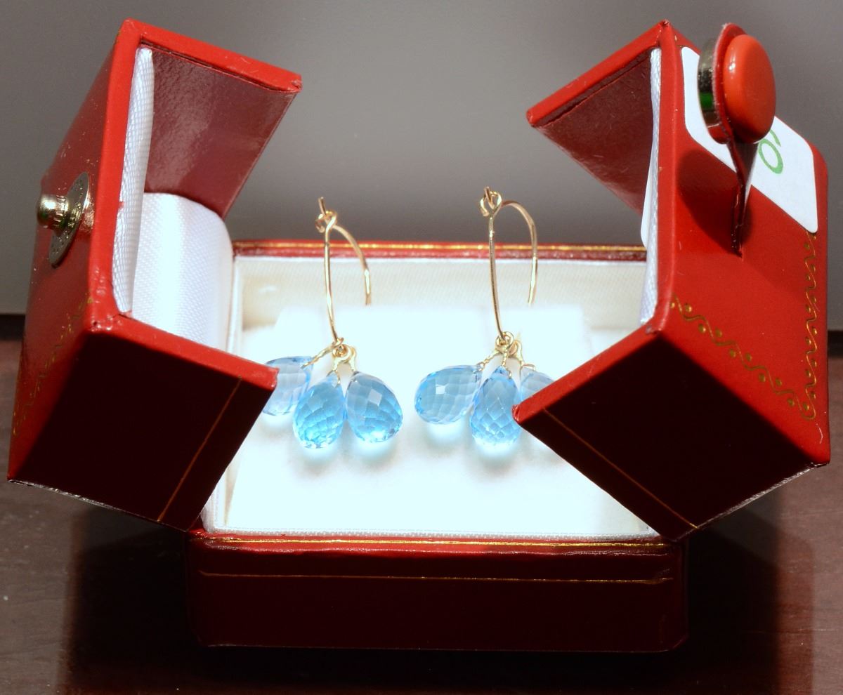 Earrings set with 6 blue topaz bead gemstones (9.50ct) Appraised $1299