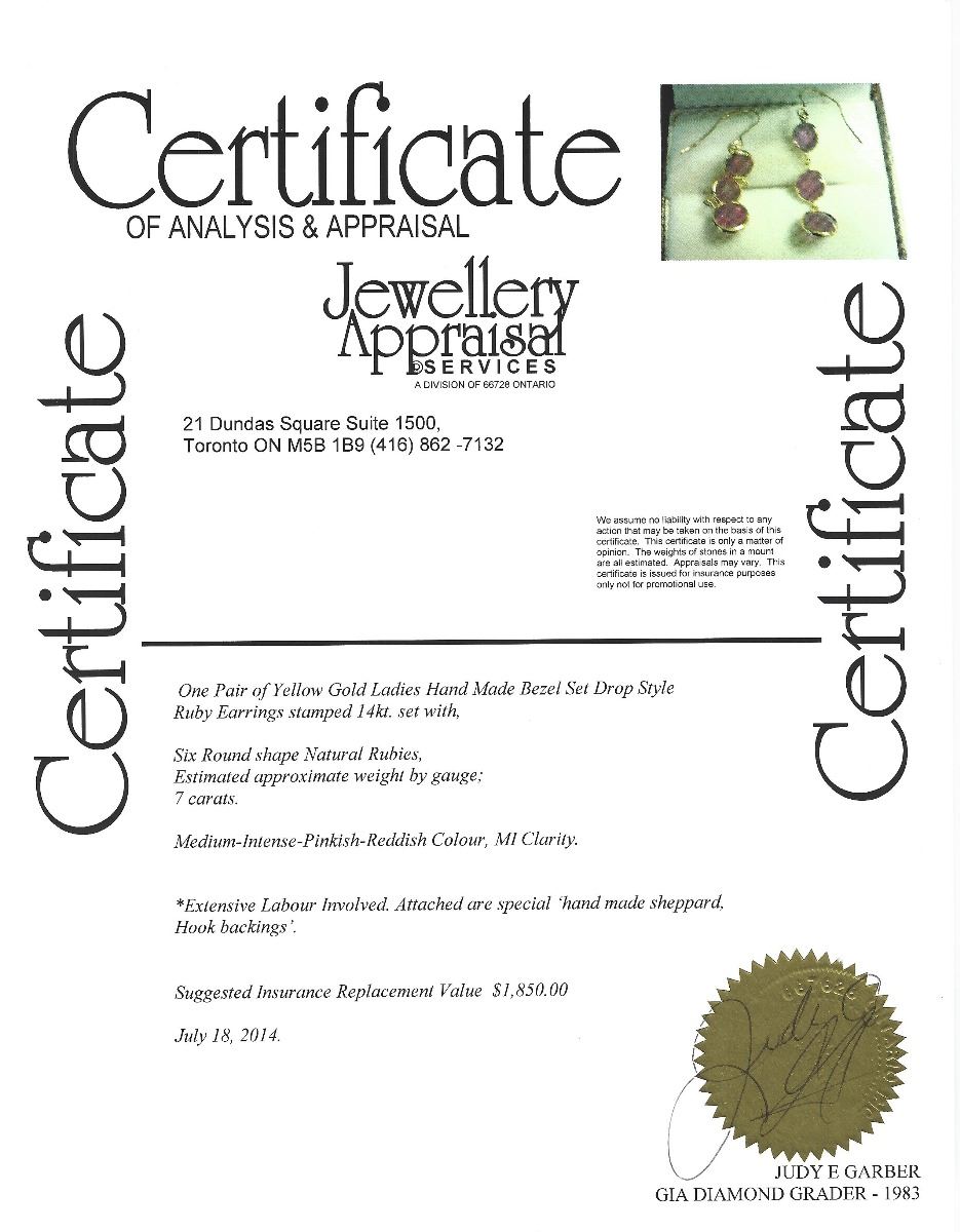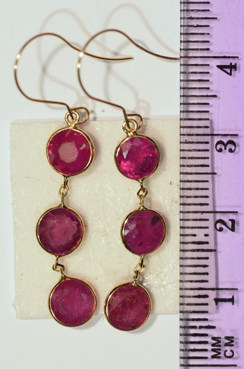 Drop Earrings seith with 3 Rubies on each earring, 7ct total