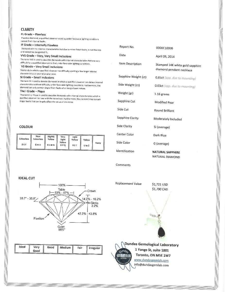 Necklace - Pendant set with 1 Sapphire at 0.65ct and 6 Diamonds MSRP $1790.00