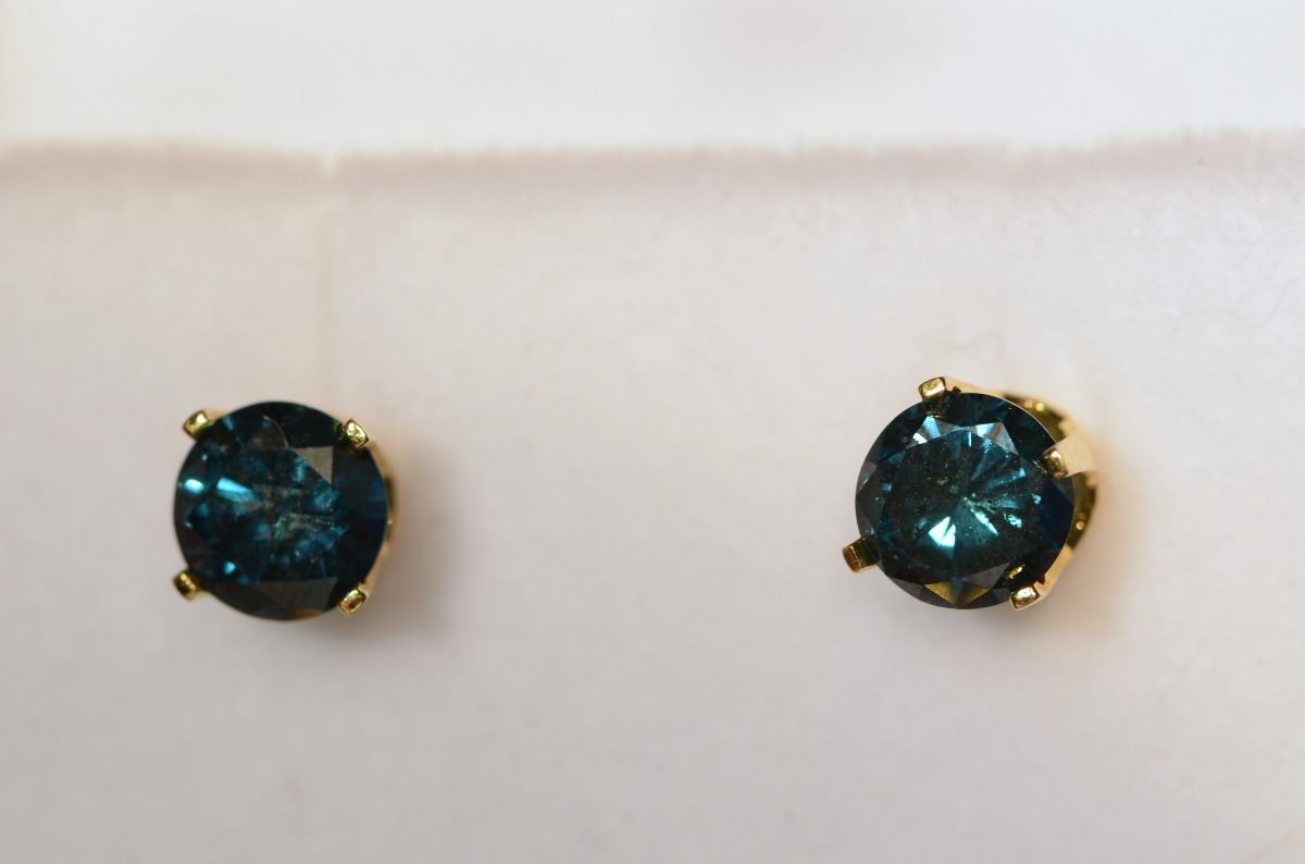 Earrings with with 1 Blue Diamond on each at 0.80ct total for both