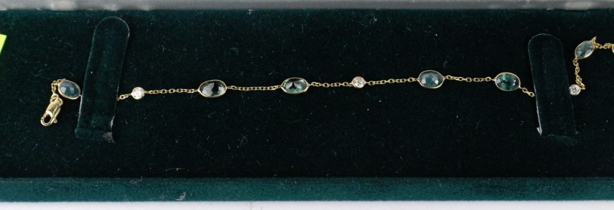 ALEXANDRITE STONE, OPEN LINK, THREE ROUND BRILLIANT CUT DIAMOND SI-2-I-1