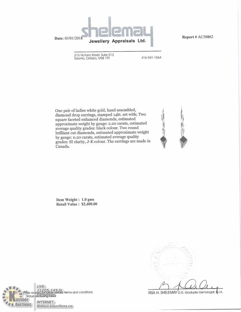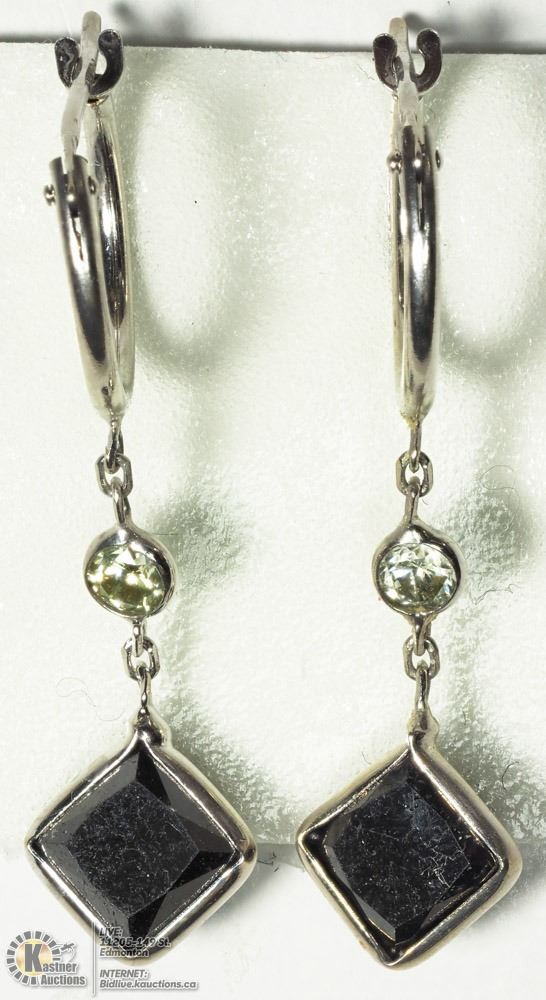 15-JP122 - 14KT GOLD BLACK DIAMOND (2.20CT) & WHITE DIAMOND (0.20CT) EARRINGS W/COA. SUGGESTED RETAIL VALUE $2400. JEWELLERY