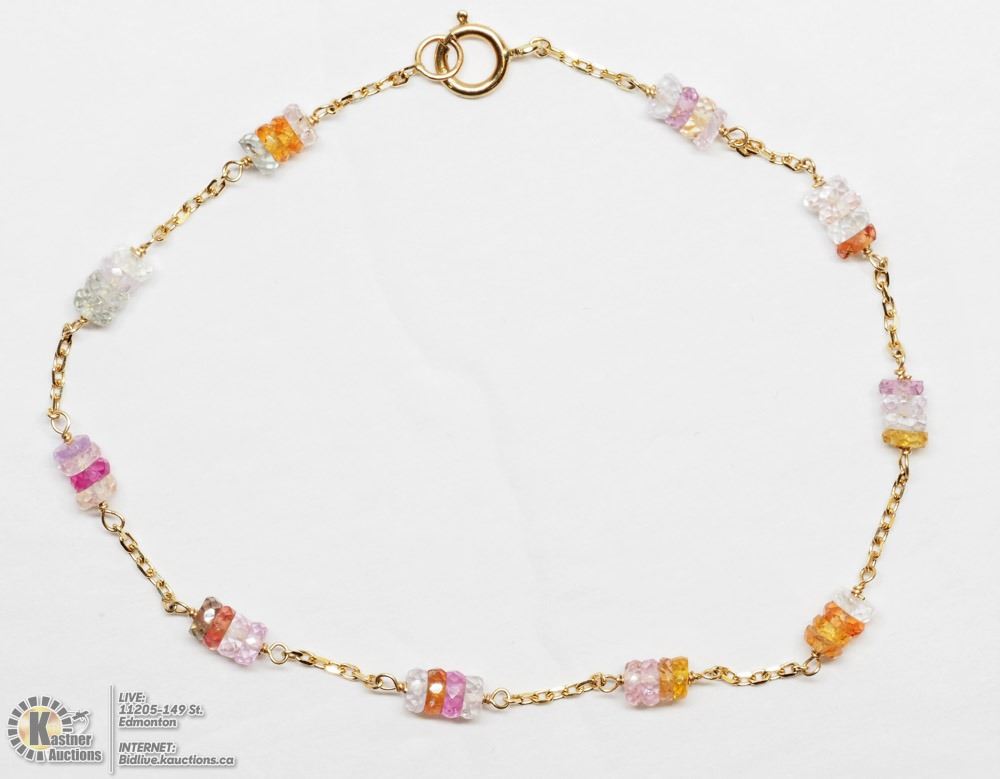 15 - GS91 - 14KT YELLOW GOLD MULTI-COLOUR SAPPHIRE (APPROX 2.10G) 7" BRACELET. JEWELLERY
