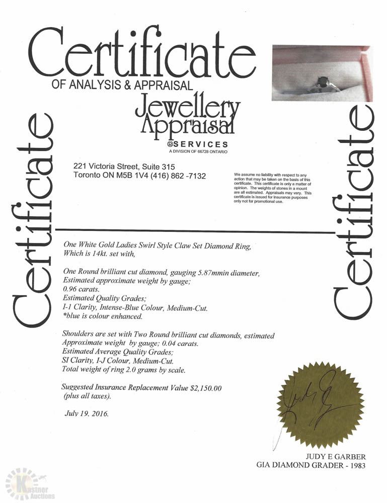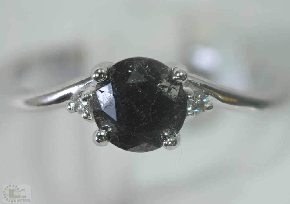 14KT WHITE GOLD SWIRL STYLE BLACK DIAMOND (0.96CT) & WHITE DIAMOND RING W/ COA - SUGGESTED REPLACEMENT VALUE $2,150.00