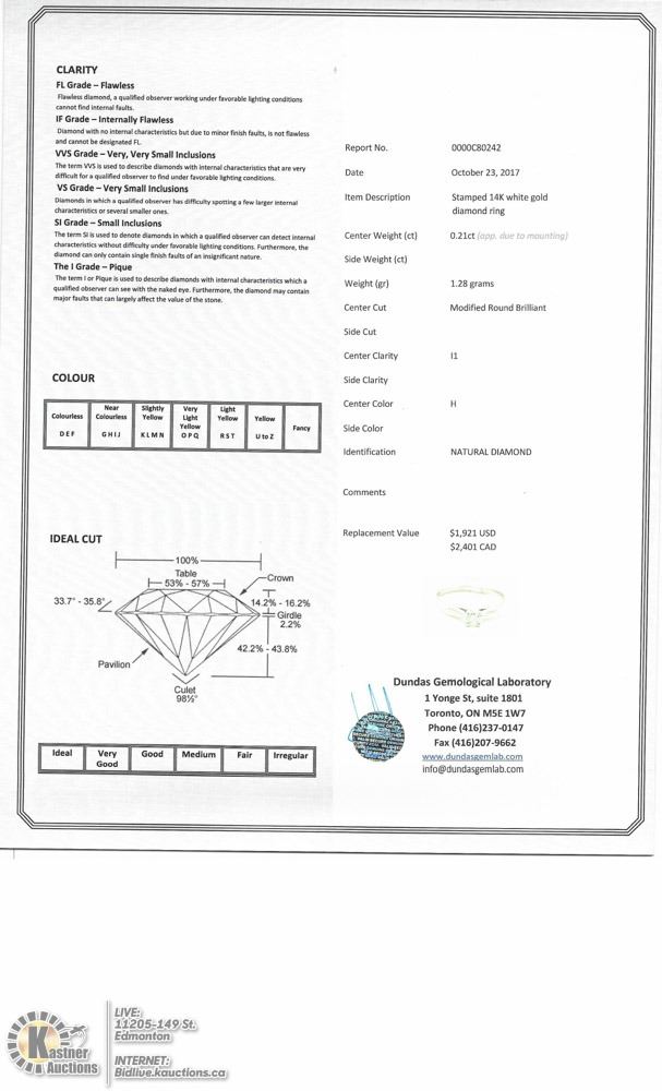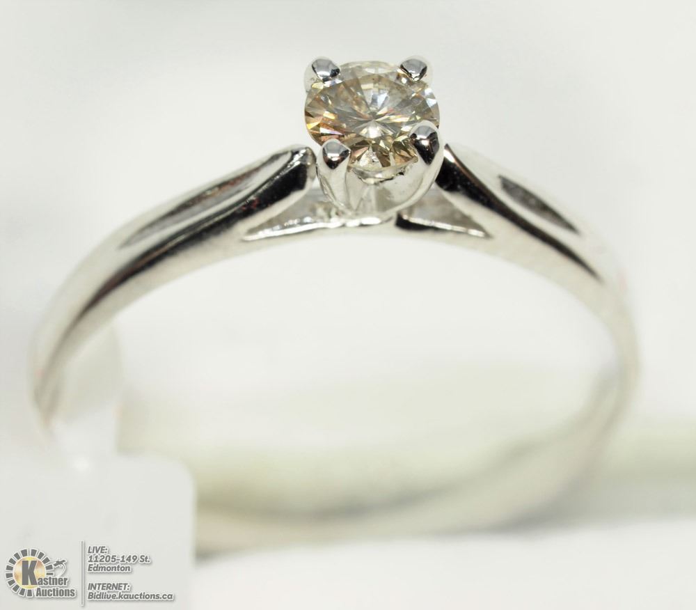 15 - MM86 - 14KT WHITE GOLD DIAMOND (0.21CT) RING SIZE 6 (1.28GRMS) W/COA. SUGGESTED REPLACEMENT VALUE $2401.00. JEWELLERY