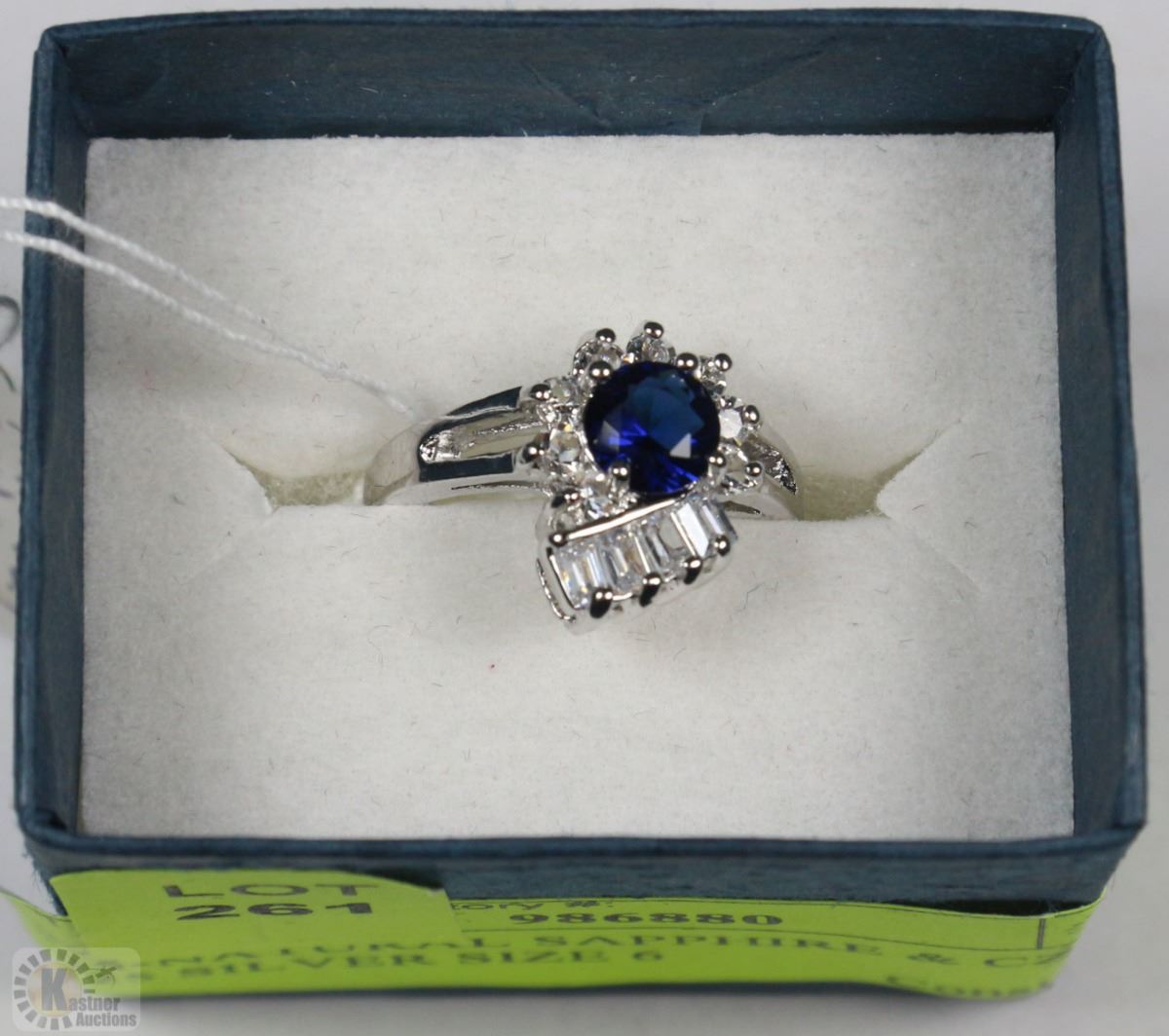 #15-NATURAL SAPPHIRE & CZ RING .925 SILVER SIZE 6