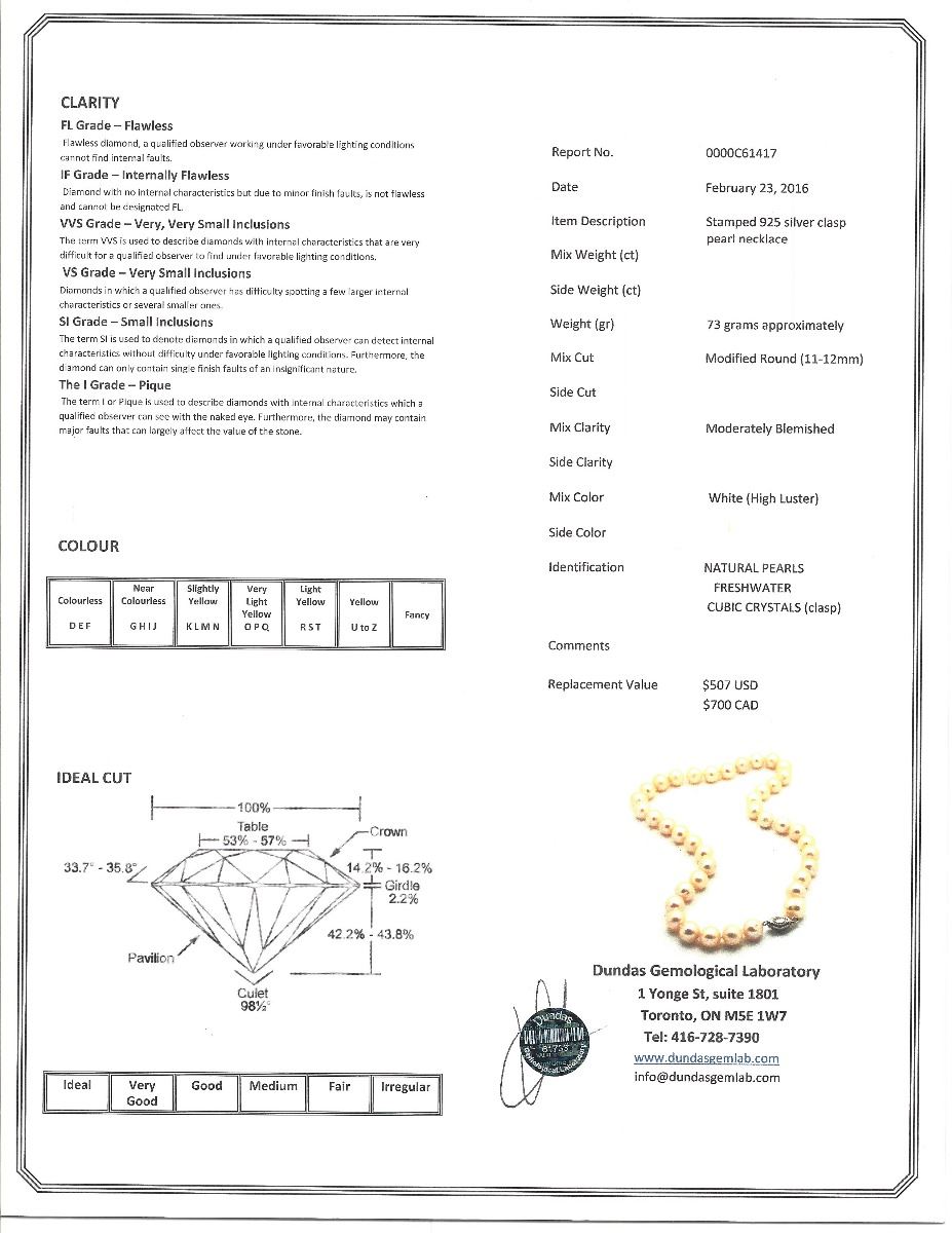 NECKLACE. W/ COA- SUGGESTED REPLACEMENT VALUE $700.00