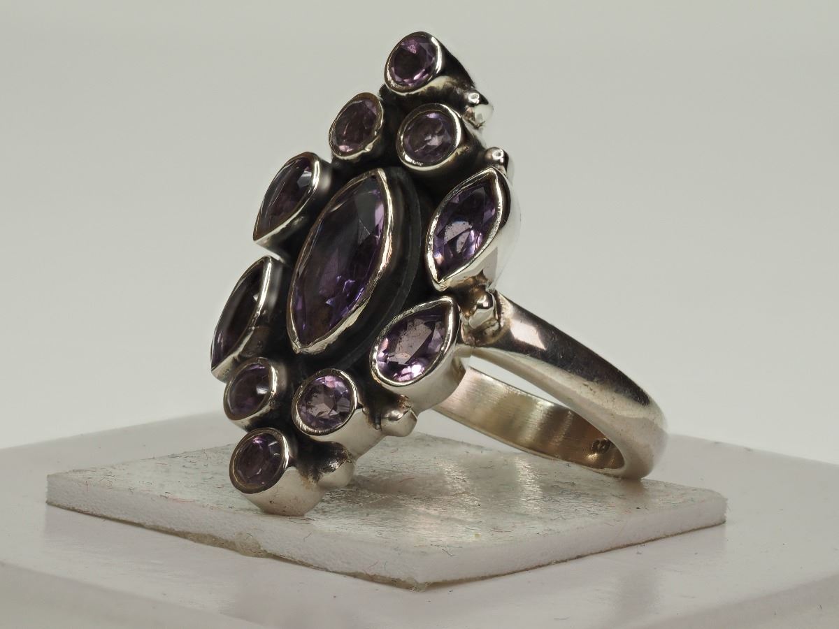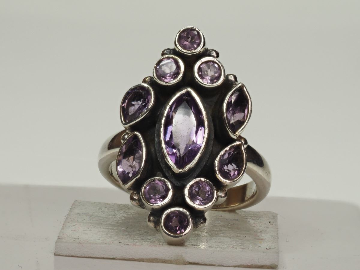 #15-STERLING SILVER LARGE AMETHYST RING