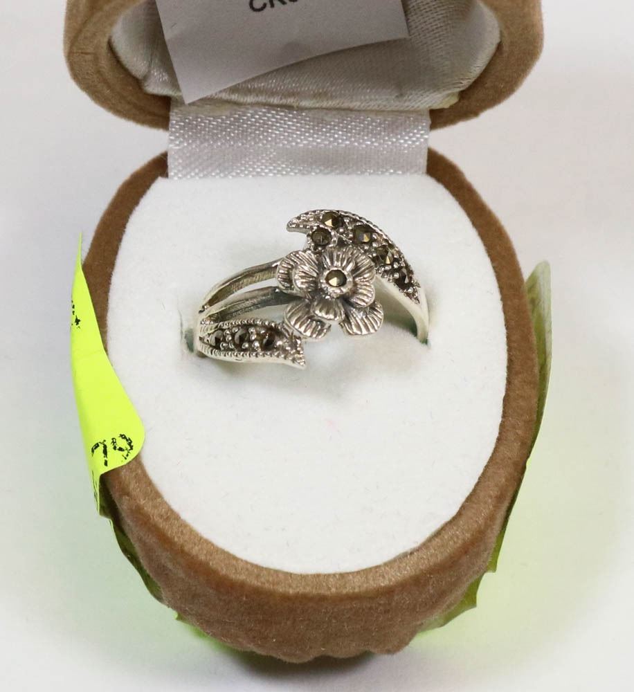 515 - CR62 - STERLING SILVER MARCASITE RING (SIZE 5.5) (~WEIGHT 2.5G). JEWELRY