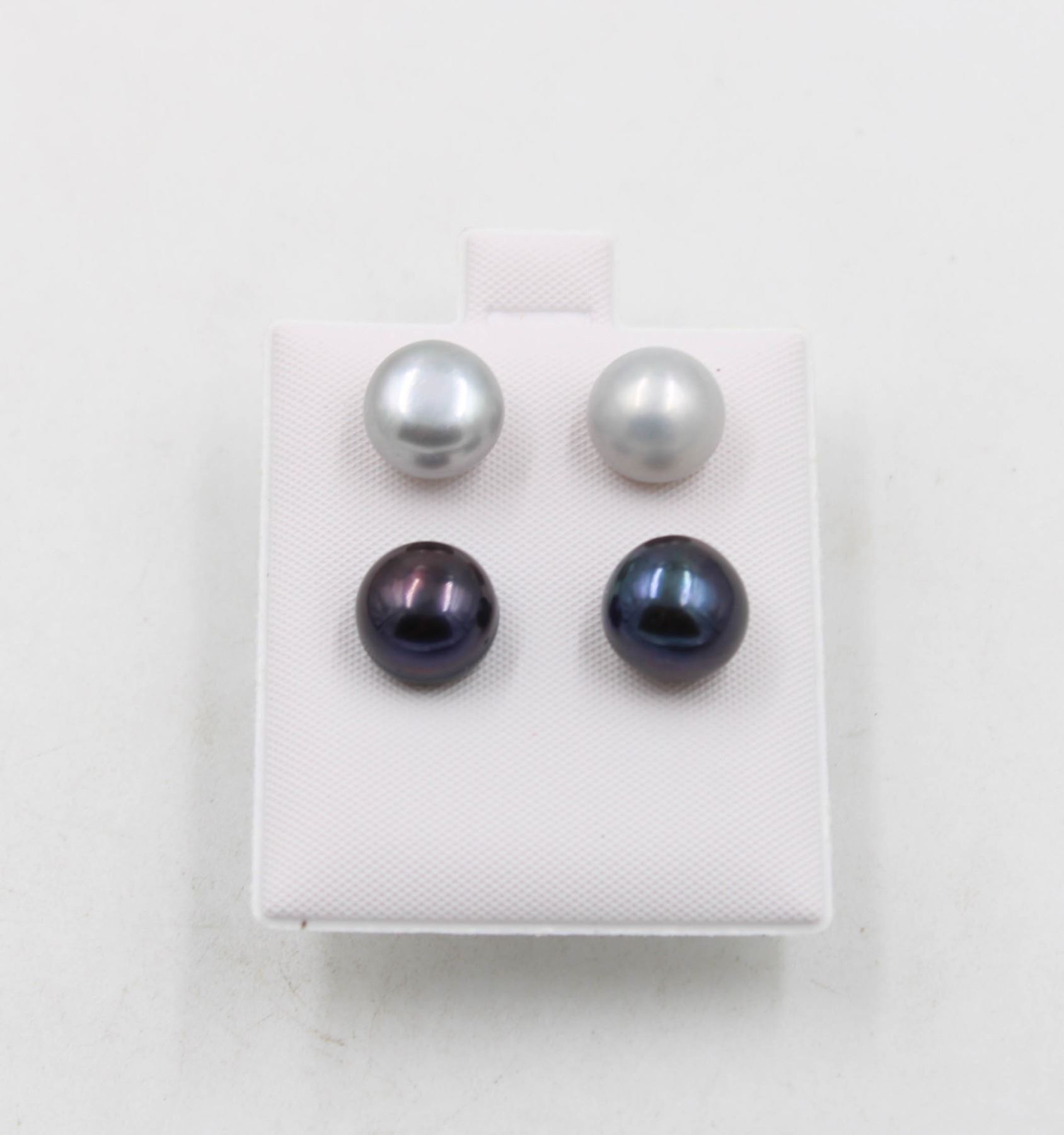.925 STERLING SILVER /2 PAIR/GRAY &RAINBOW BLACK/9.3 TO 9.5 MM