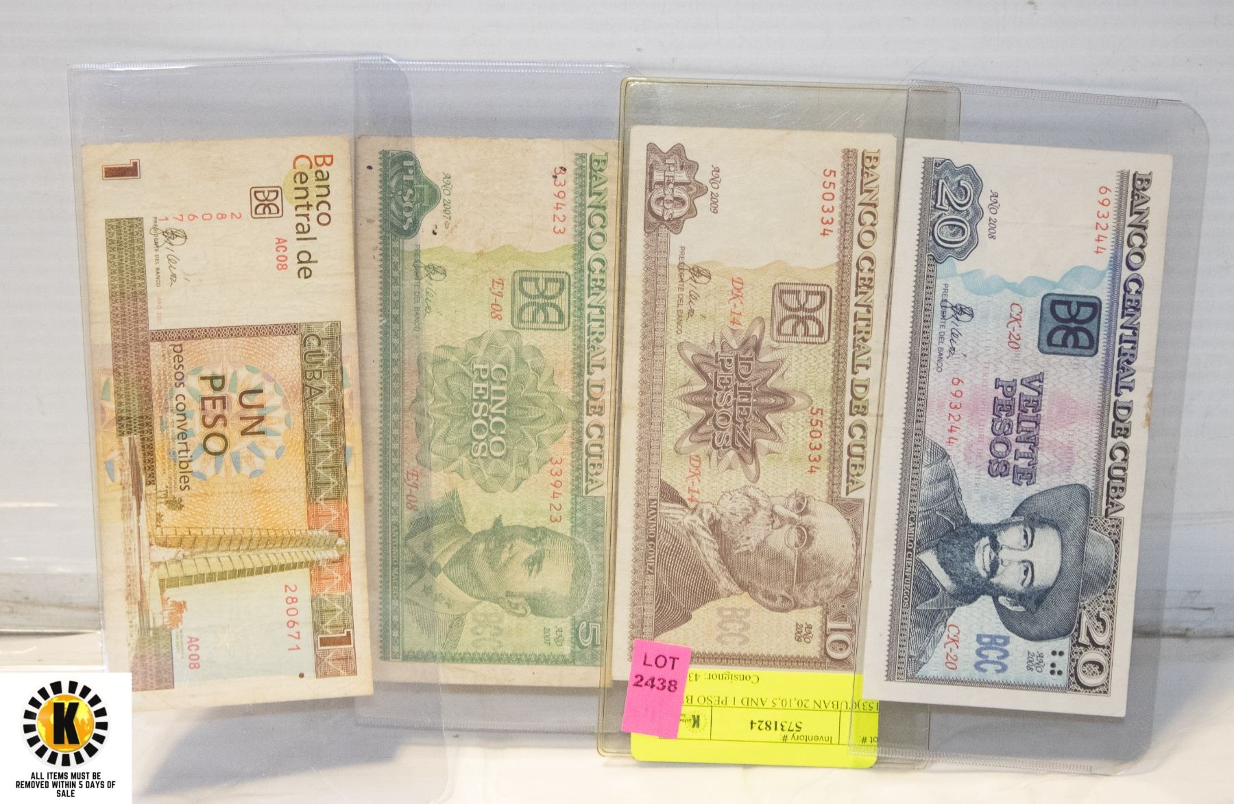 153)CUBAN 20,10,5 AND 1 PESO BILLS