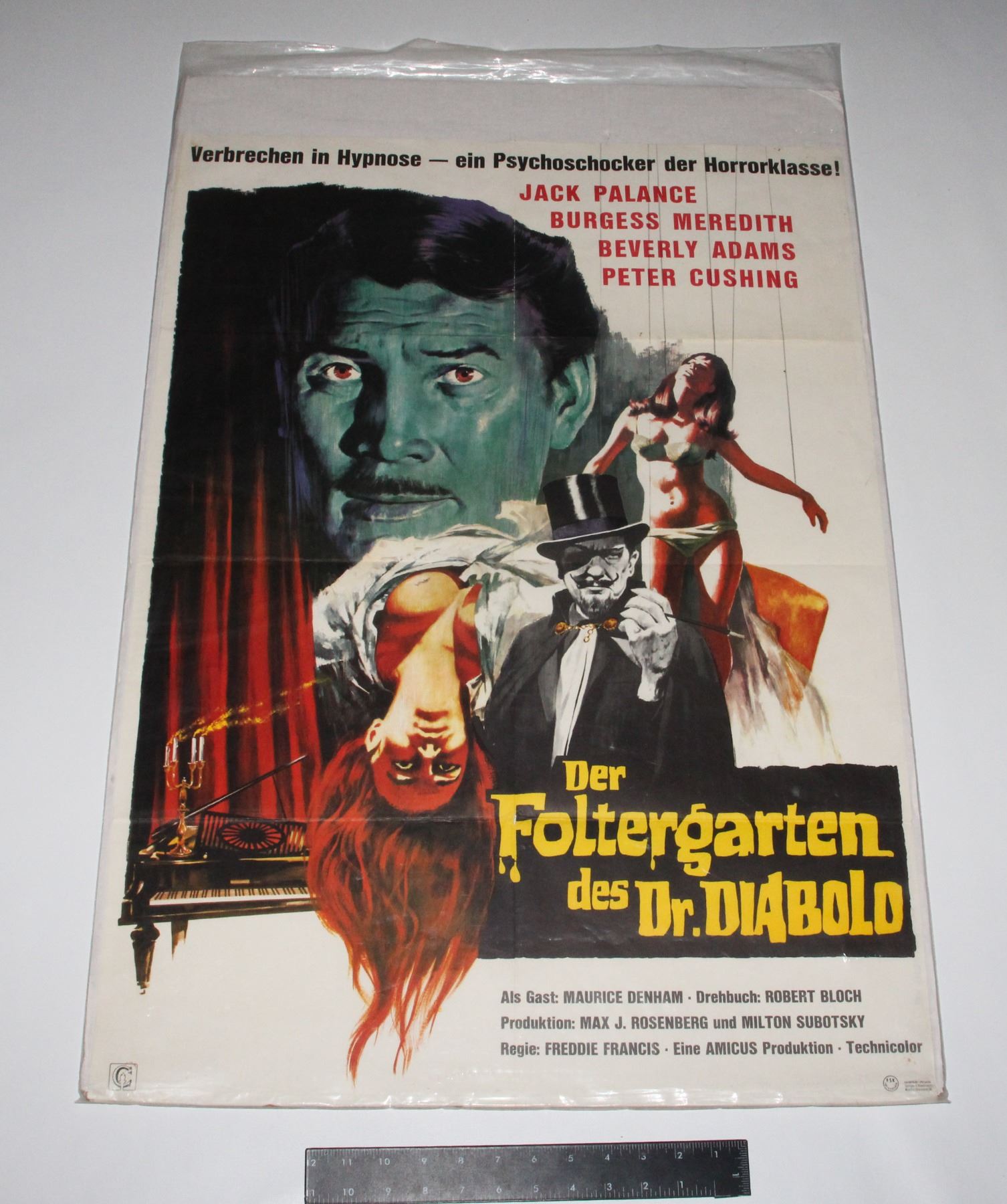 33 X 23.5 INCHES IN SIZE GERMAN LANGUAGE POSTER DER FOLTERGARTEN DES DR. DIABOLO , BRITISH MOVIE IN PROTECTIVE LARGE SIZE BOARD MOVIE MEMORABILIA 1900'S 20TH CENTURY ADVERTISING