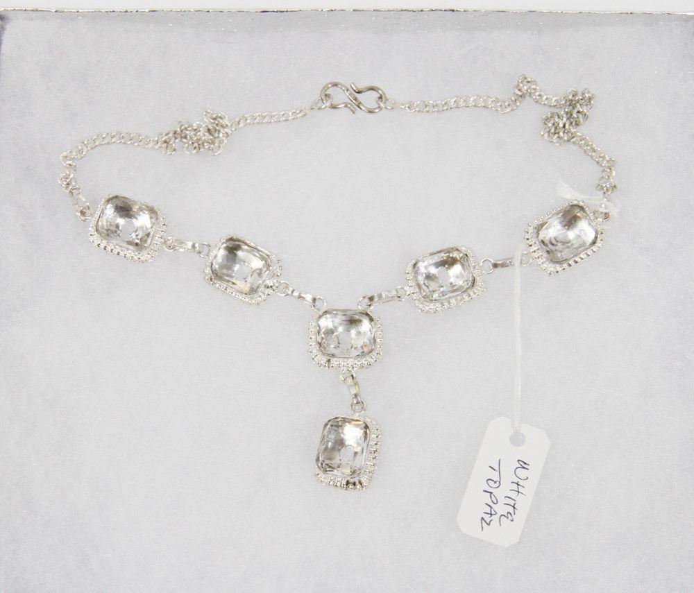 #154- WHITE TOPAZ GEMSTONE NECKLACE