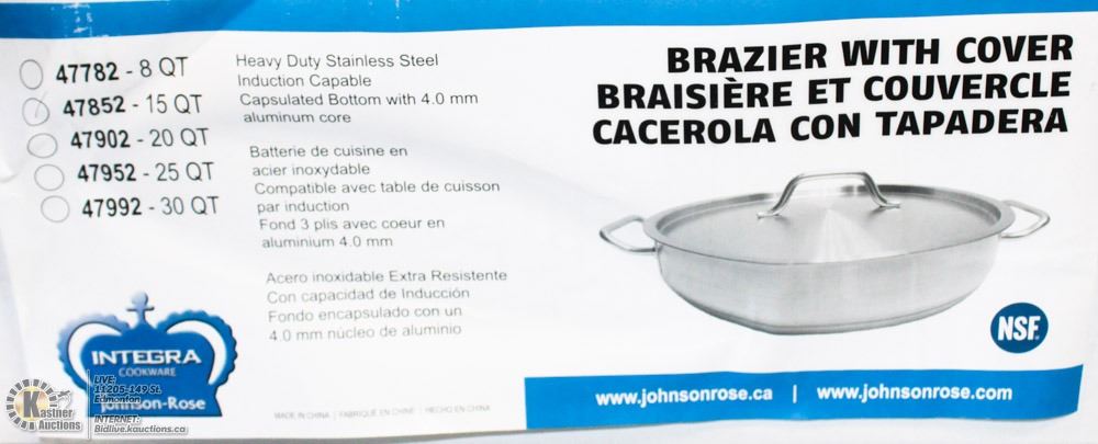 15QT HEAVY DUTY STAINLESS STEEL BRAZIER INDUCTION CAPABLE JOHNSON-ROSE NEW