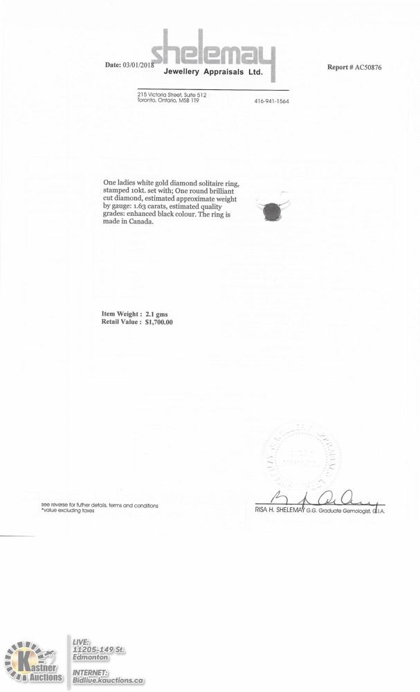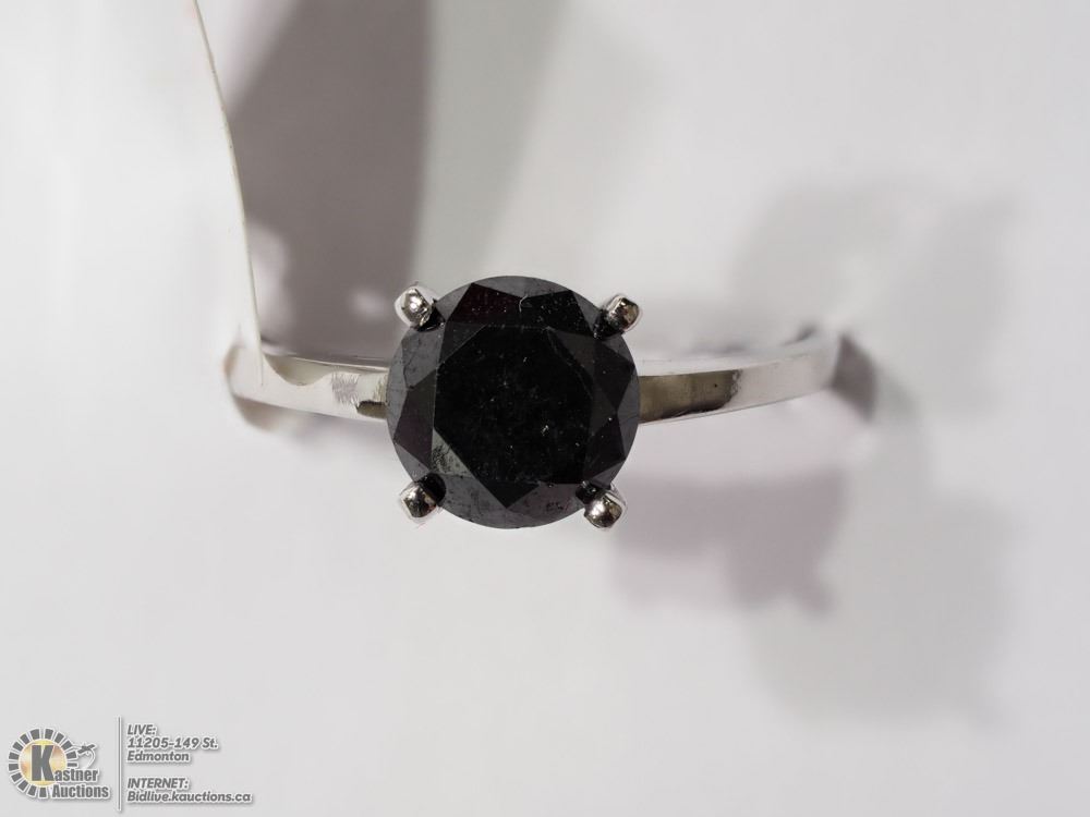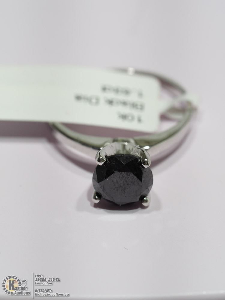 16-JP122 - 10KT BLACK DIAMOND (1.63CT) RING (2.1G), MADE IN CANADA W/COA. SUGGESTED RETAIL VALUE $1700. JEWELLERY