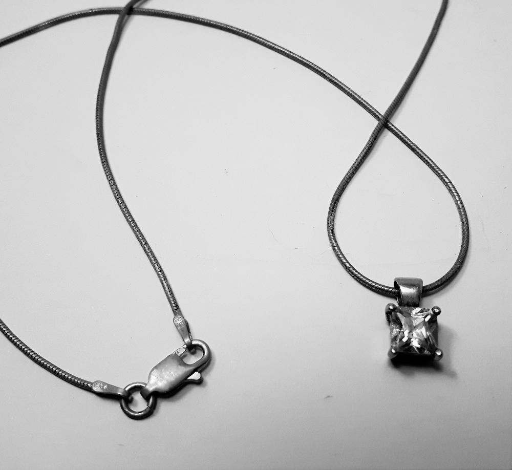 SOLITAIRE 925 STAMPED SETTING ON A 16" ITALY 925 STAMPED CHAIN. JEWELRY