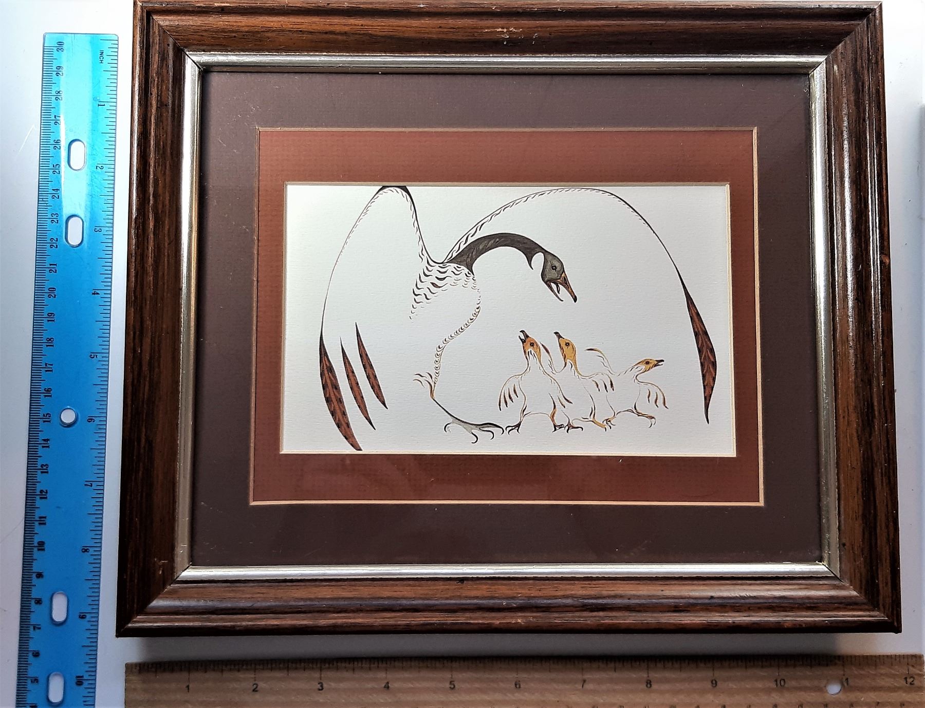ABORIGINAL ARTIST EDDY COBINESS "MOTHER CANADA GOOSE AND HER CHICKS" FROM HIS GOOSE SERIES. COLLECTIBLES