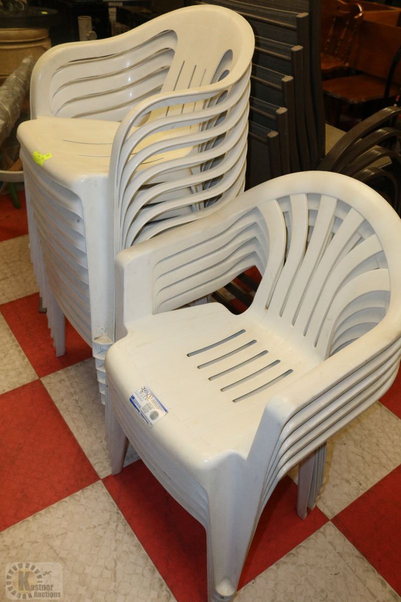 16 GRACIOUS LIVING WHITE PLASTIC PATIO CHAIRS