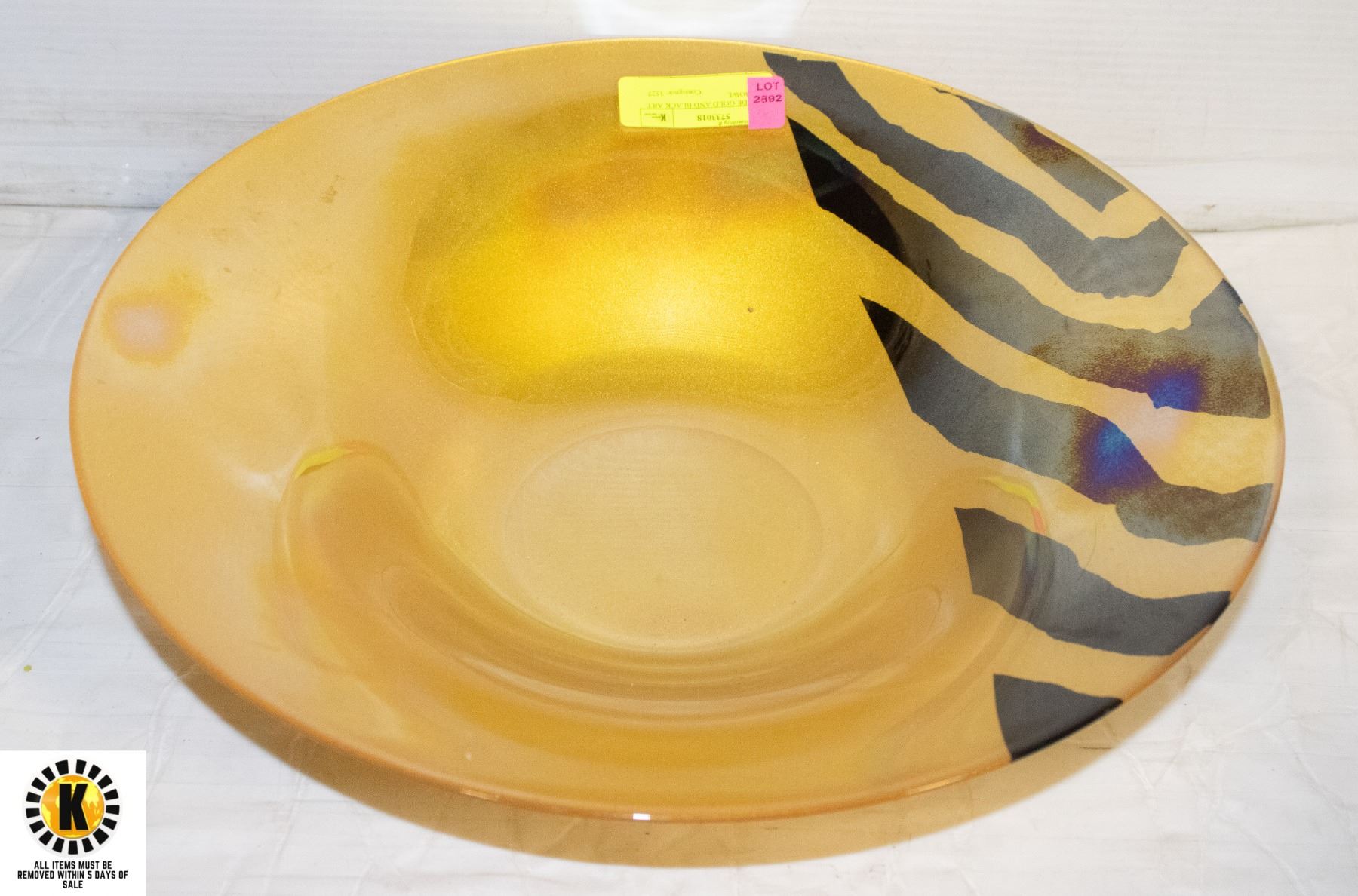 16 IN WIDE GOLD AND BLACK ART GLASS BOWL