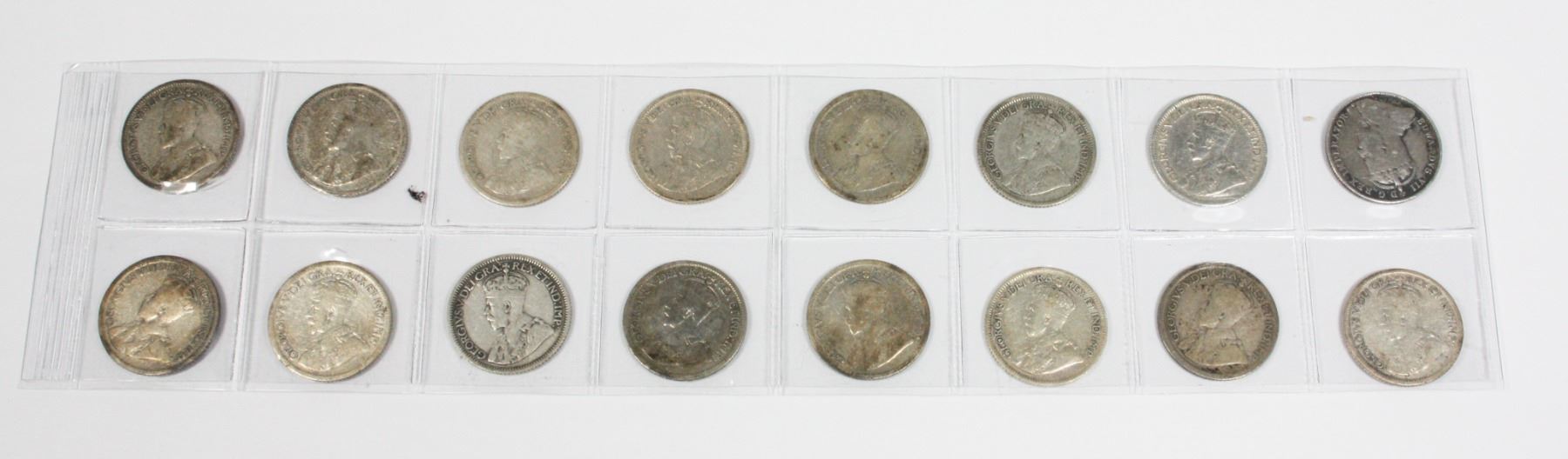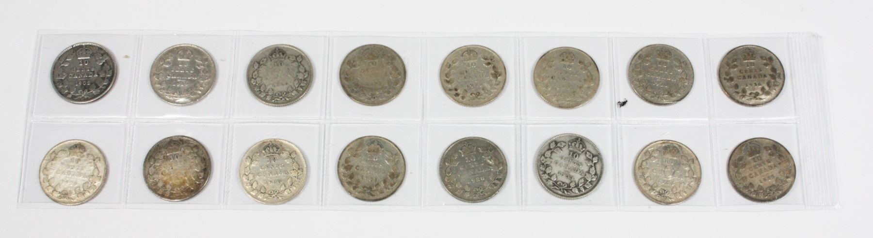 , 1930 X3, 31X2,33,34,36 X 2. 16 King George V Dimes early years 80% Silver variety of grades.