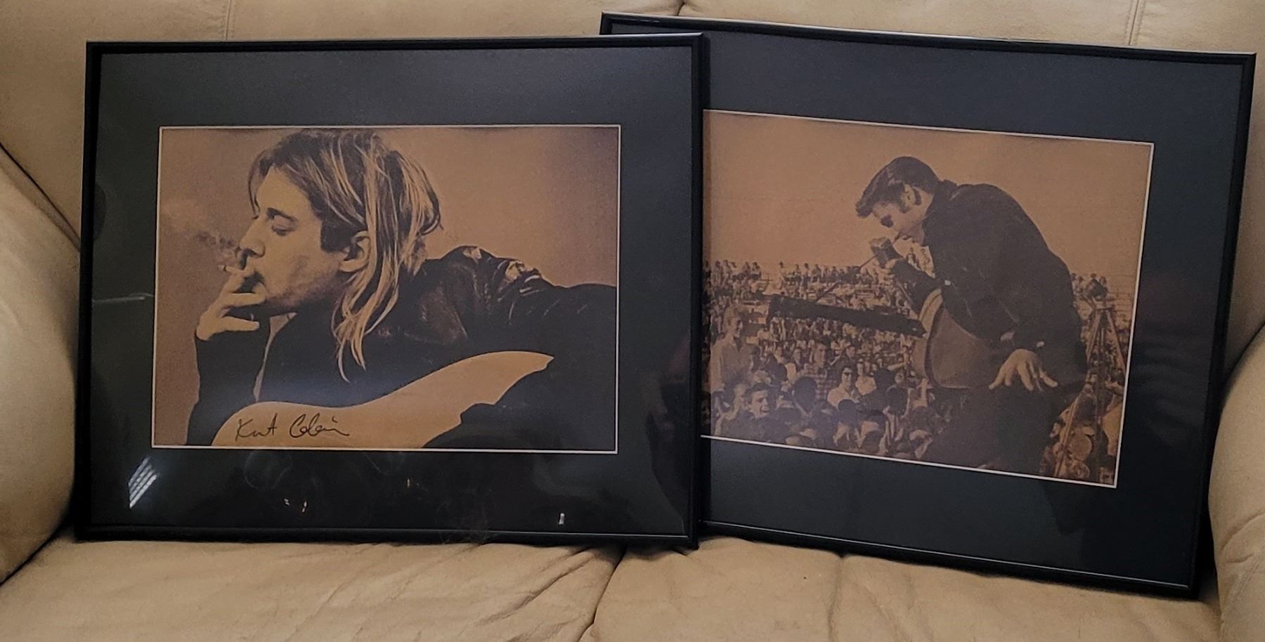 PICTURES OF CURT COLBAIN (NIRVANA) & EARLY ELVIS IN CONCERT, FRAME SIZE 16X20 & IMAGE SIZE 8X14. HOME DCOR
