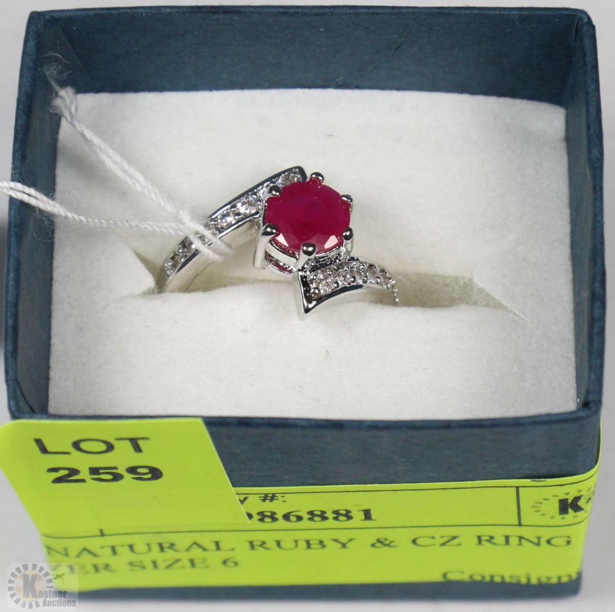 #16-NATURAL RUBY & CZ RING .925 SILVER SIZE 6