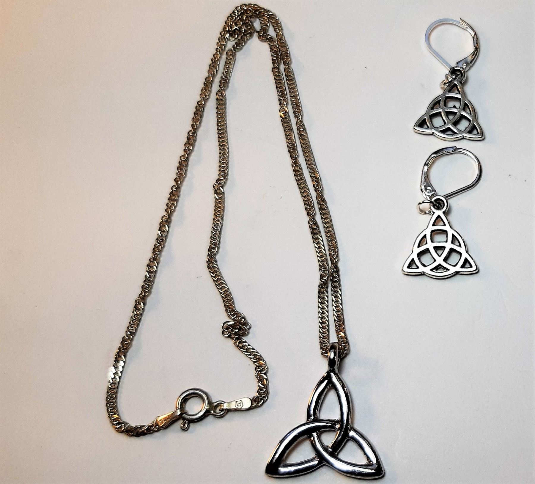 ON 16" CHAIN WITH COORDINATING EARRINGS ON 925 STAMPED SILVER FRENCH WIRES. JEWELLERY