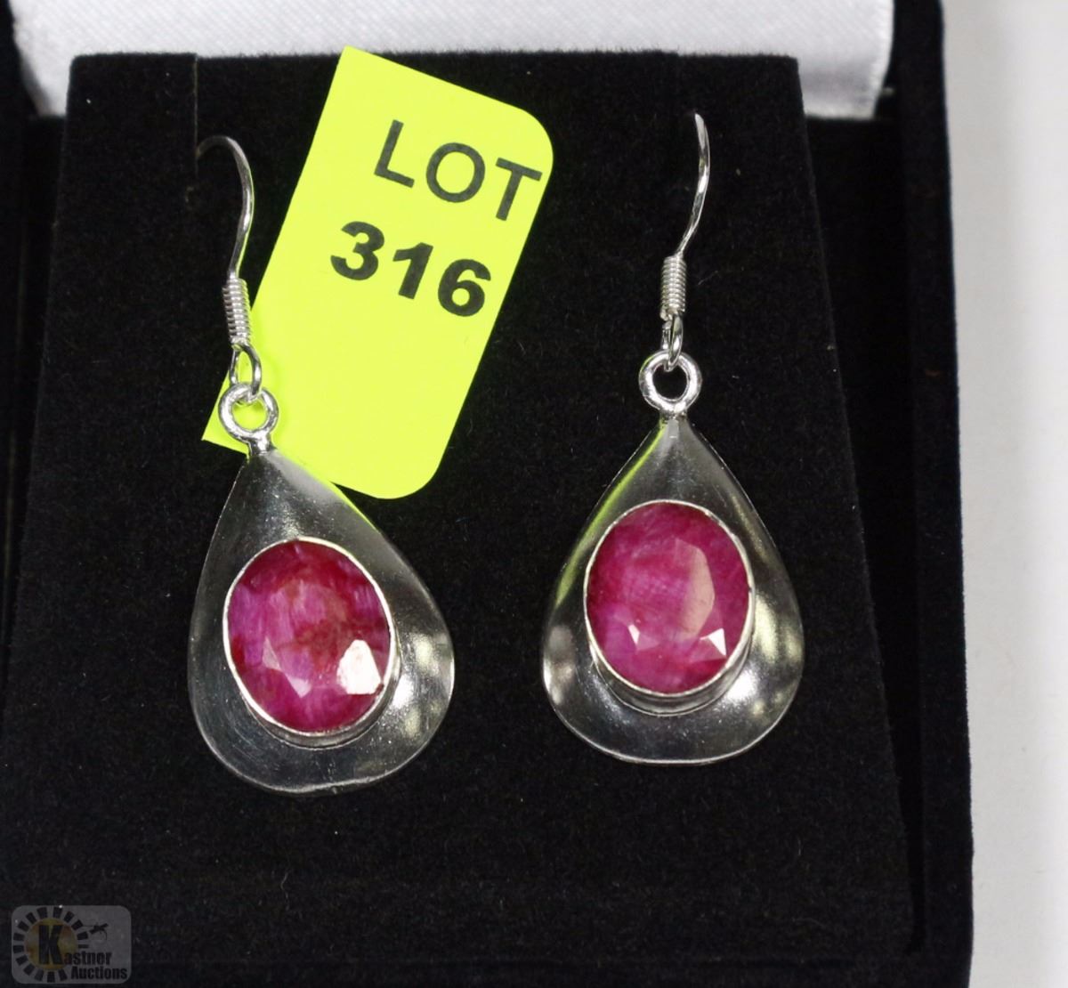 #16-STERLING SILVER NATURAL RUBY EARRINGS