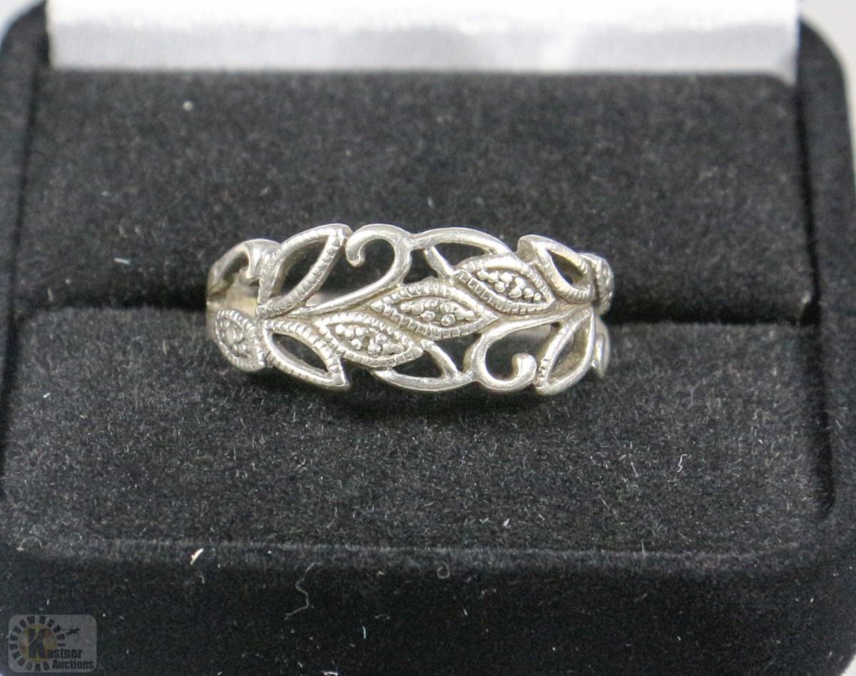 #16-VINTAGE .925 SILVER LEAF DESIGN RING SIZE 9.25