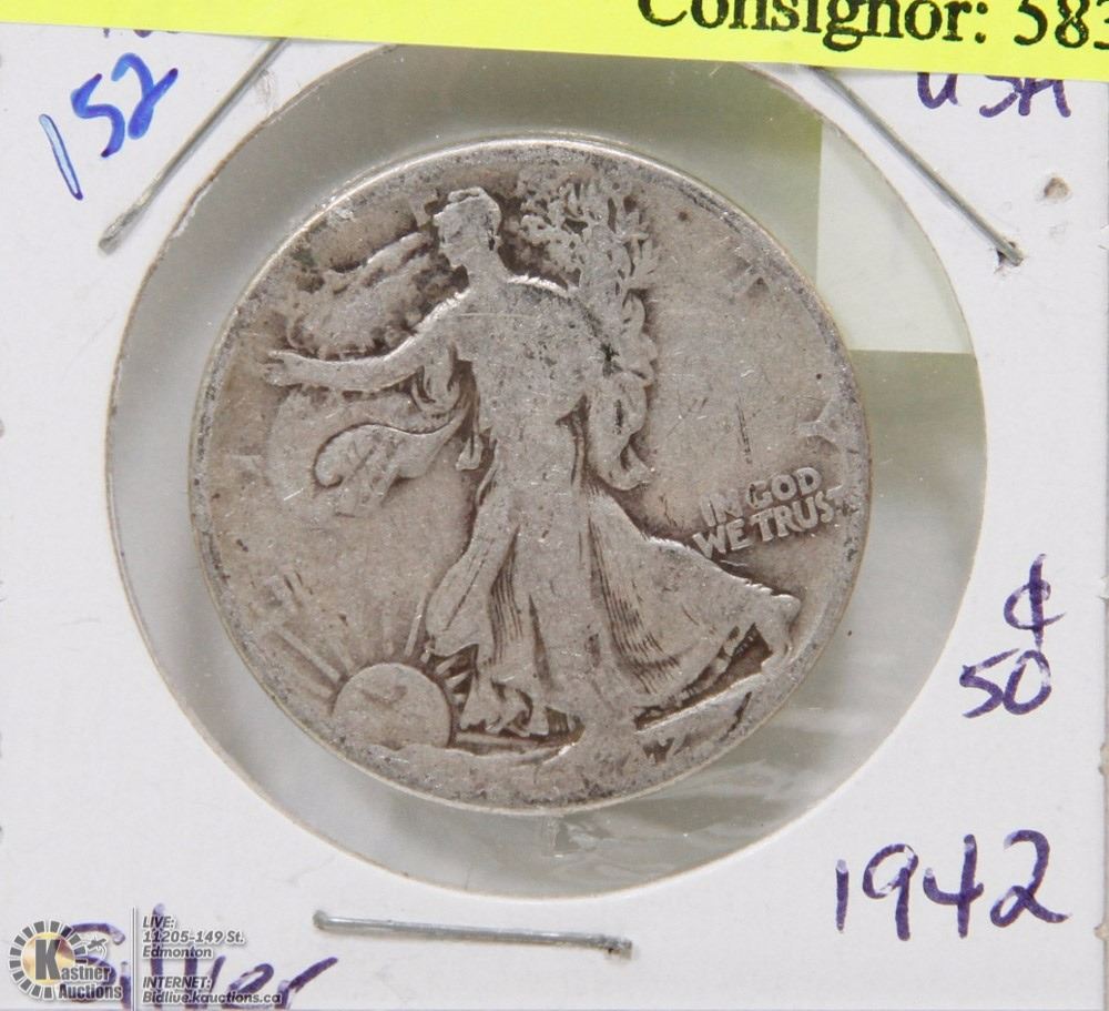 160) 1942 US WALKING LIBERTY SILVER HALF DOLLAR
