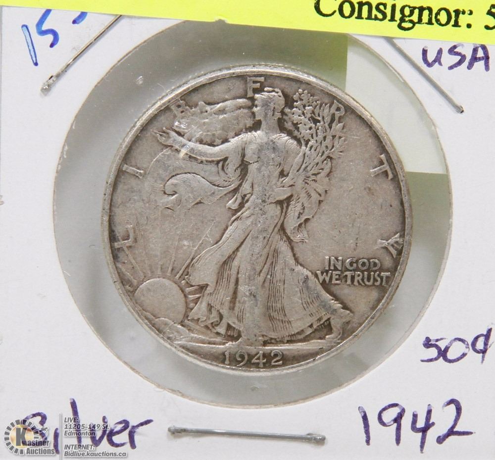 161) 1942 US WALKING LIBERTY SILVER HALF DOLLAR
