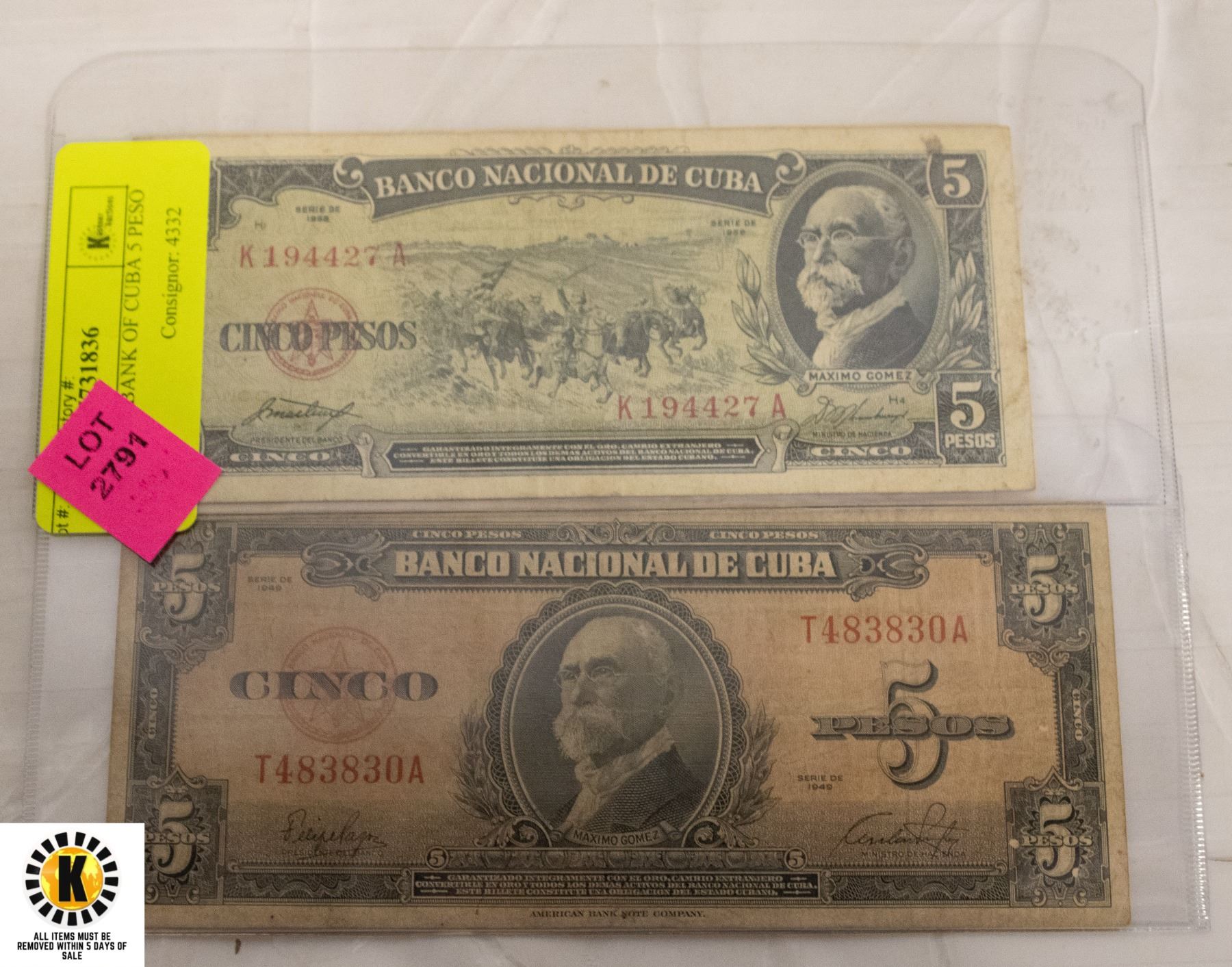 165)1949,1958 BANK OF CUBA 5 PESO BILLS
