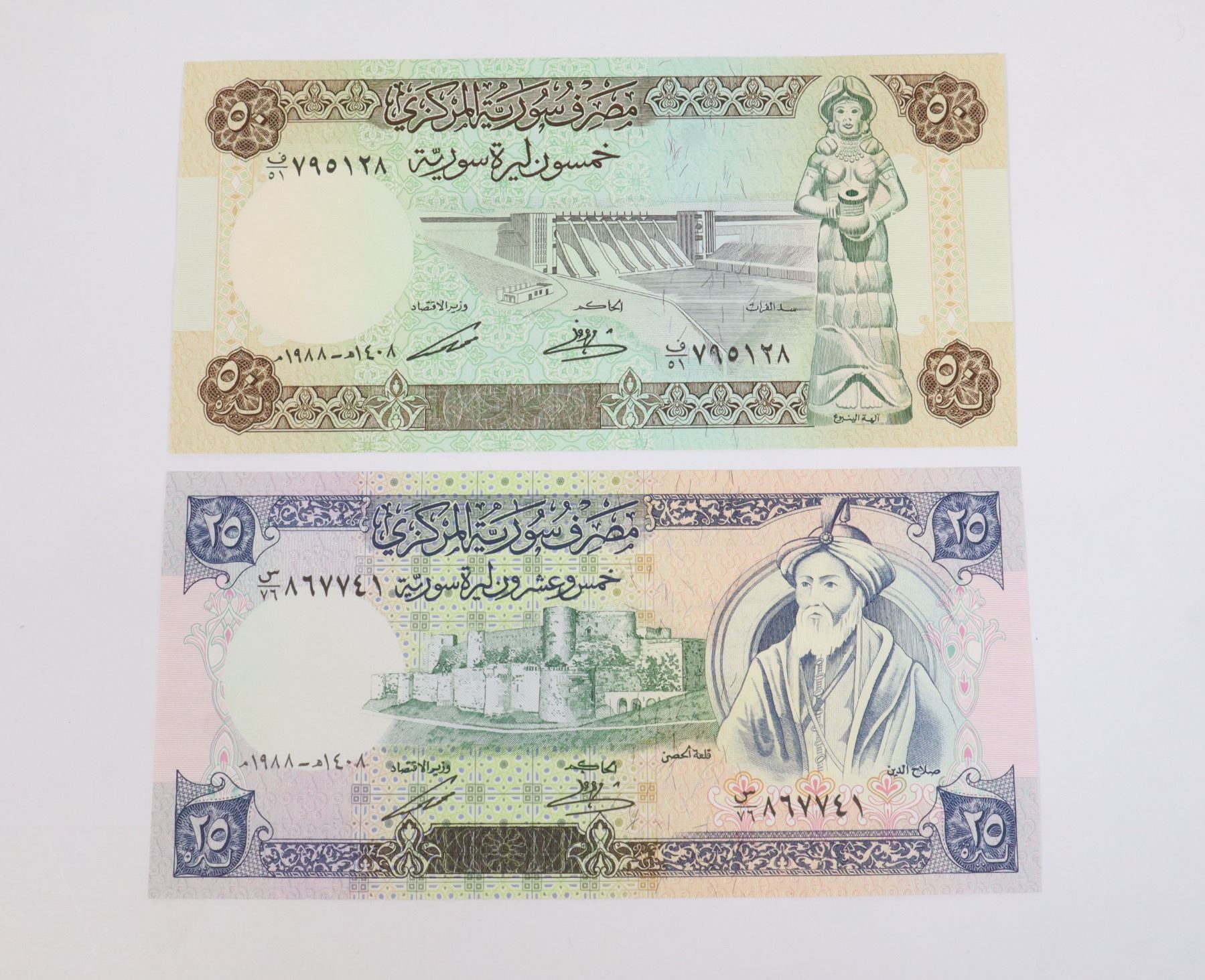 LOT OF 2 SYRIA MIDDLE EAST CURRENCY PAPER MONEY BANKNOTE BILL