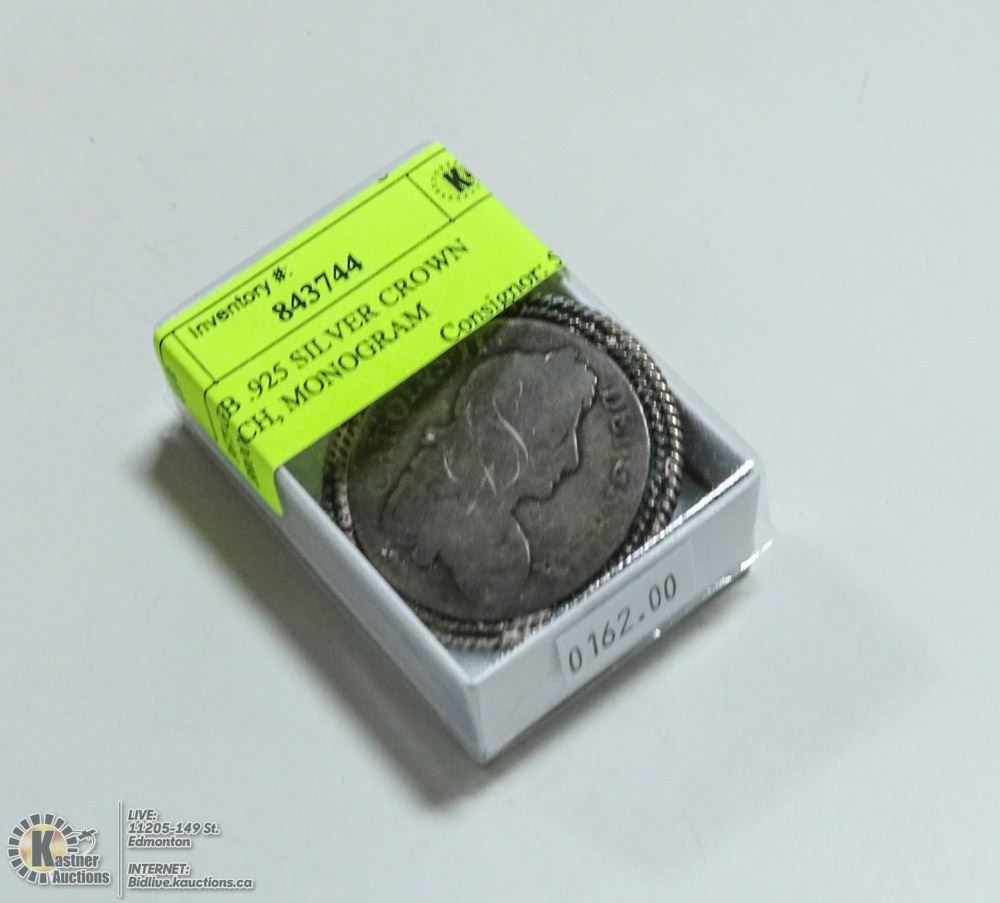 1673 GB .925 SILVER CROWN BROOCH, MONOGRAM