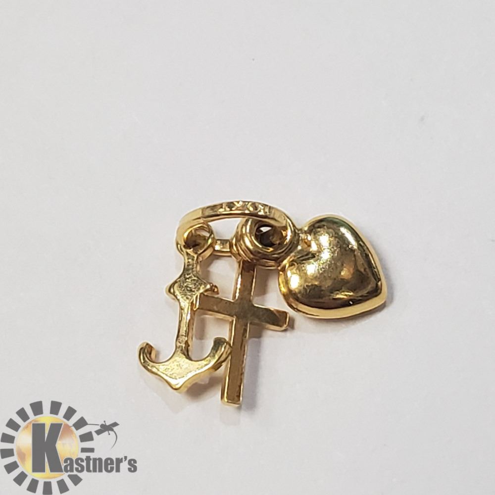 17) 10K - PENDENT WITH 3 SMALL CHARMS, (~WEIGHT 0.46G),