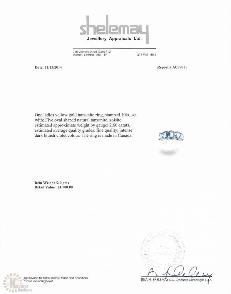 10KT YELLOW GOLD TANZANITE (2.60CT) RING W/ COA - SUGGESTED REPLACEMENT VALUE $1,700.00