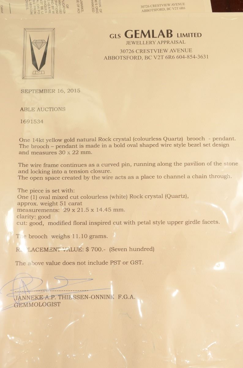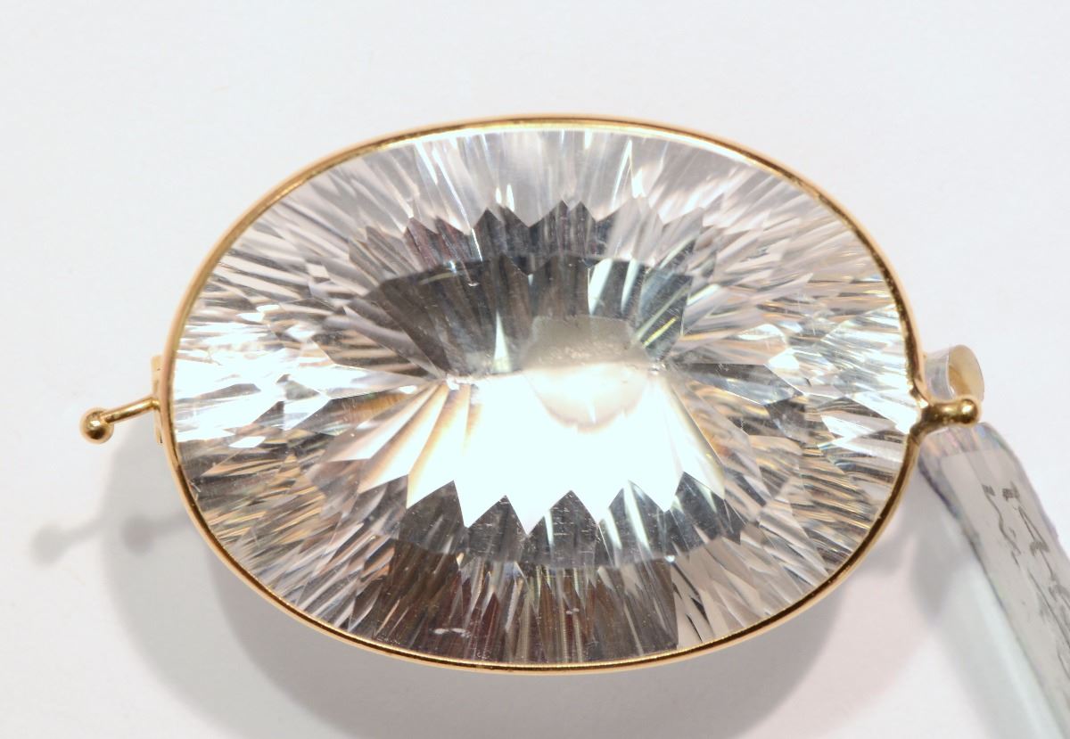 YELLOW GOLD BROOCH-PENDANT WITH A LARGE QUARTZ (51.0CT) WITH A CURVED PIN BACK