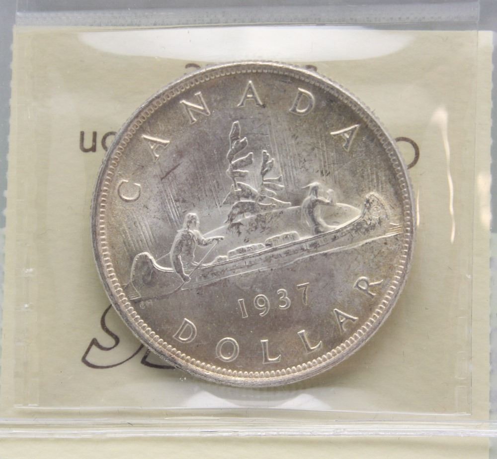 #17)1937 ICCS MS63 CANADIAN SILVER DOLLAR COIN