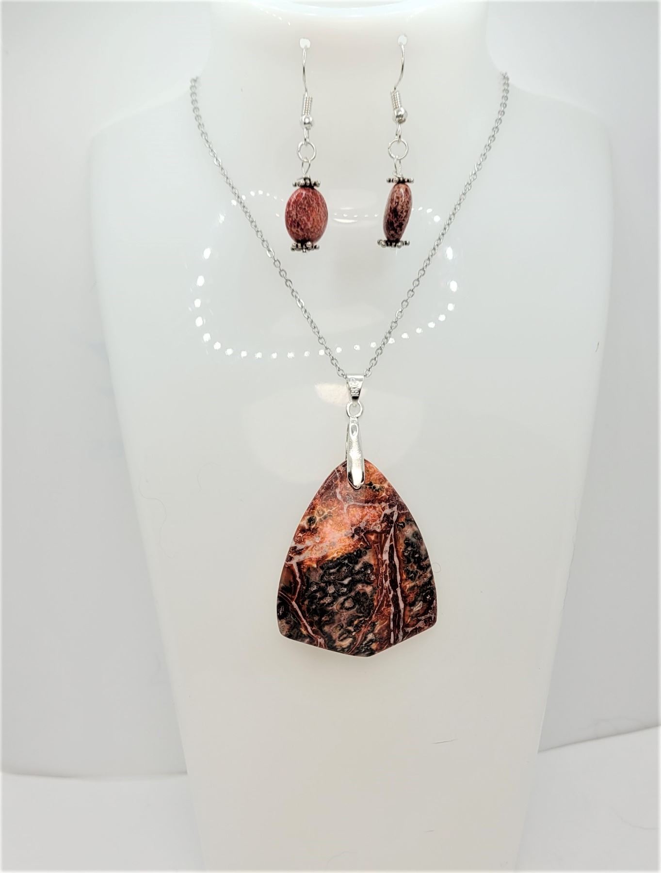 PENDANT ON 18" SILVER TONE CHAIN AND COORDINATING DROP EARRINGS ON NICKLE FREE FISH HOOK WIRES. JEWELRY
