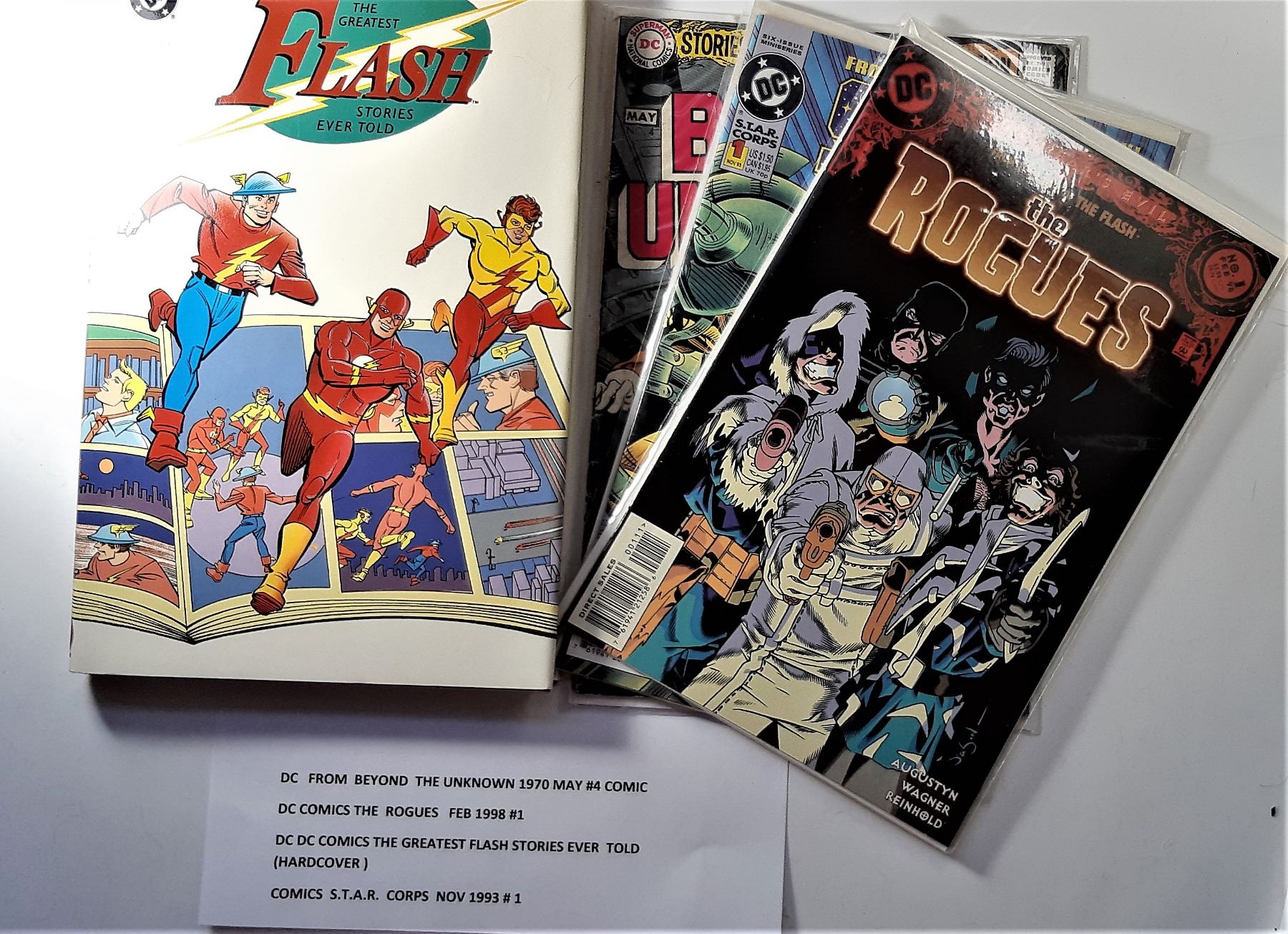 GREATEST FLASH STORIES EVER TOLD", DC COMIC BOOK FROM BEYOND, THE UNKNOWN MAY 1970 #4, DC COMICS " THE ROGUES", FEBRUARY 1998 #1, COMICS S.T.A.R. CORPS COMIC FROM NOVEMBER 1993 #1. COLLECTIBLES