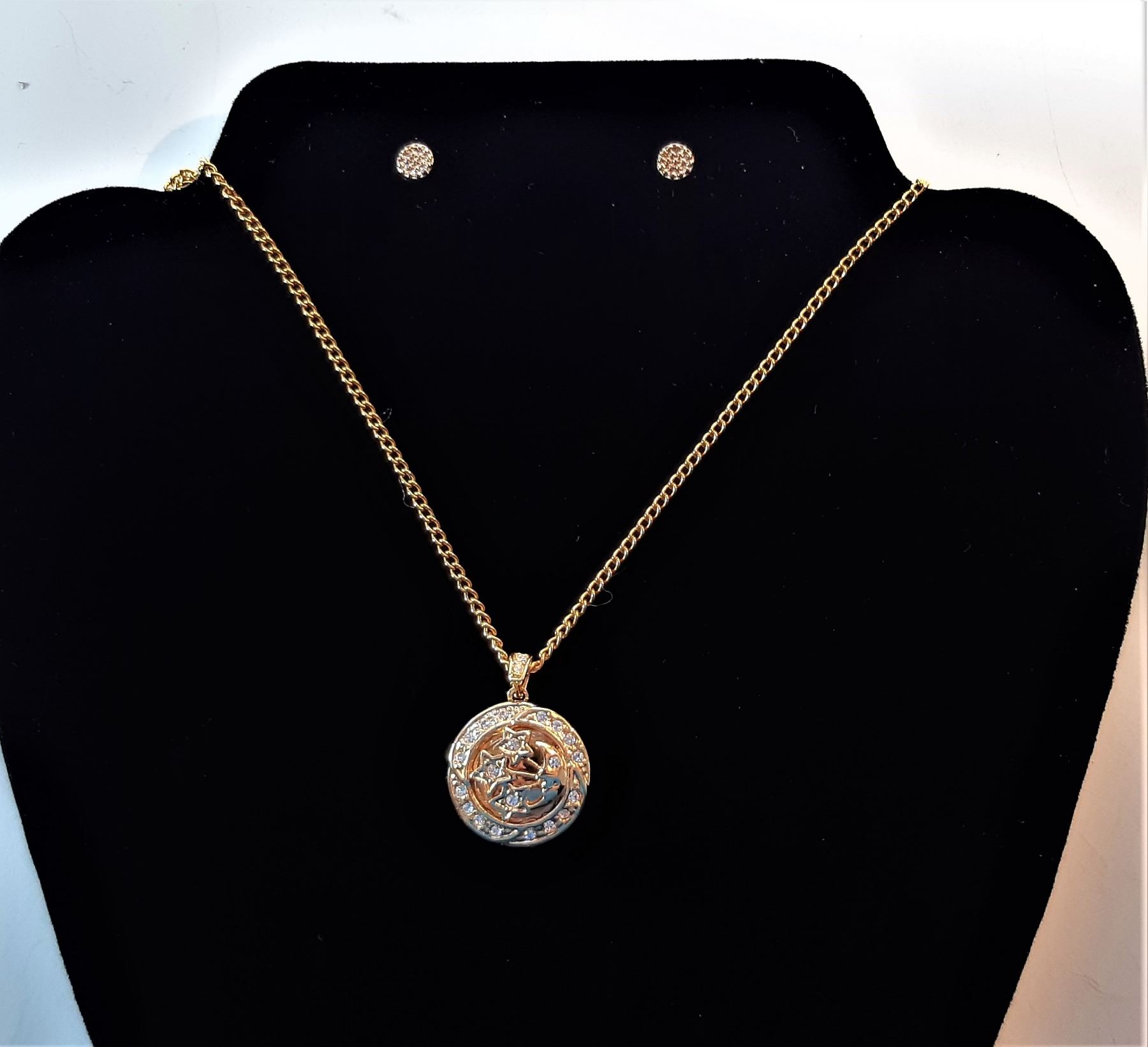 LOCKET ON CHAIN WITH COORDINATING ROUND STUD EARRINGS. JEWELRY