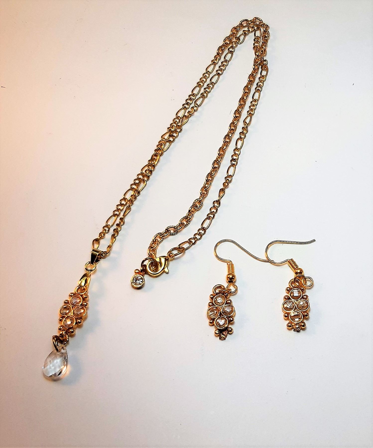 PENDANT ON A 18" FIGARO CHAIN WITH MATCHING DROP EARRINGS. JEWELLERY