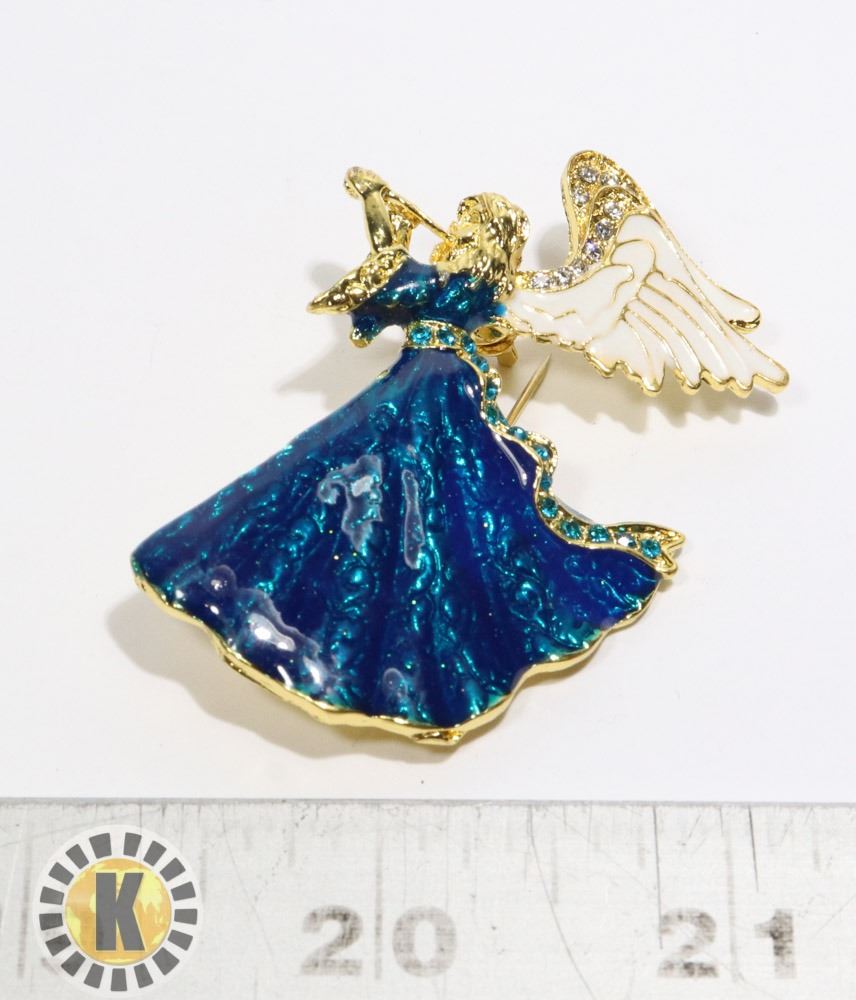 ENAMEL AND CLEAR & BLUE CRYSTALS ANGEL BROOCH. JEWELRY***ITEM(S) LOCATED IN LETHBRIDGE ALBERTA