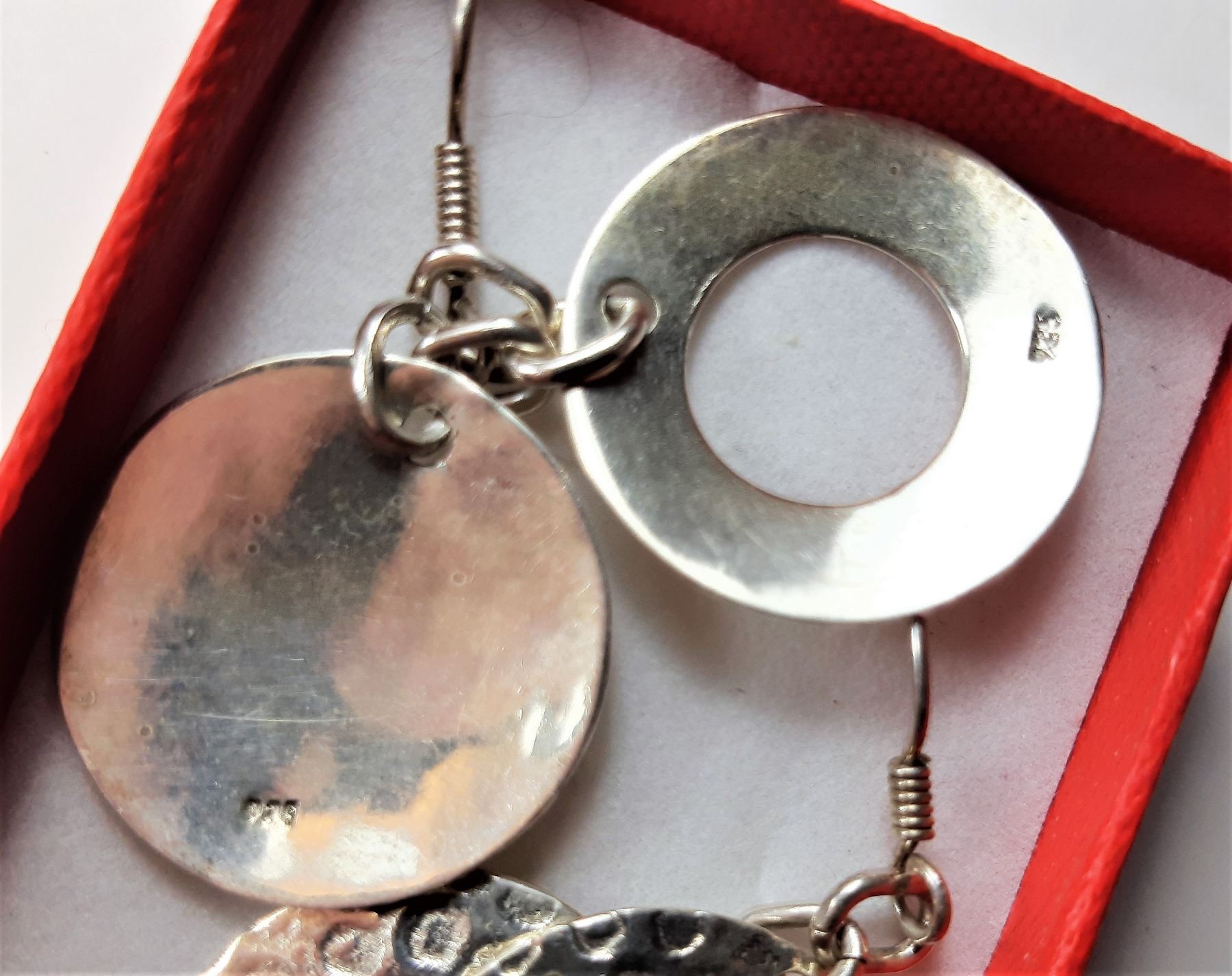 STAMPED 925, FEATURING AN OPEN CIRCLE WITH A CLOSED CIRCLE BEHIND IT. JEWELRY