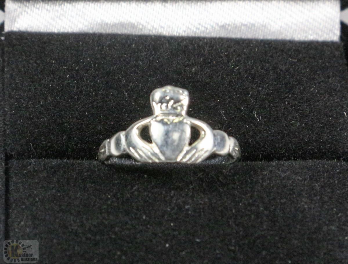 #17-IRISH CLADDAGH .925 SILVER RING SIZE 7