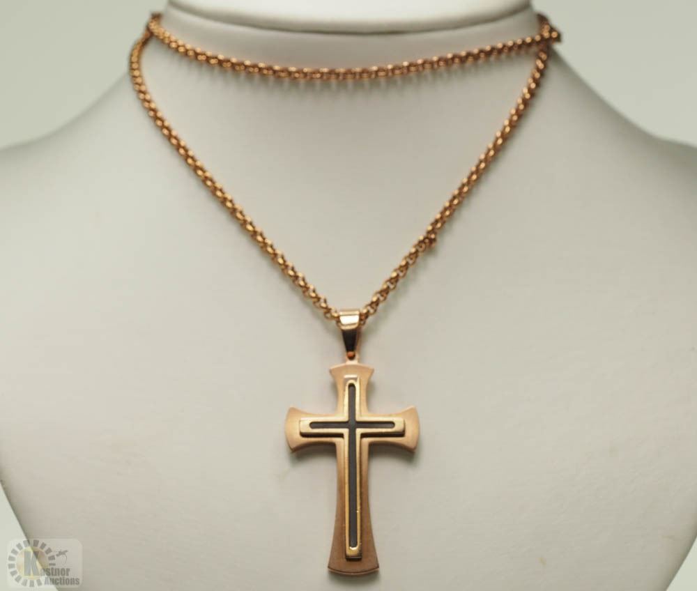 STAINLESS STEEL ROSE GOLD CROSS MEN'S NECKLACE