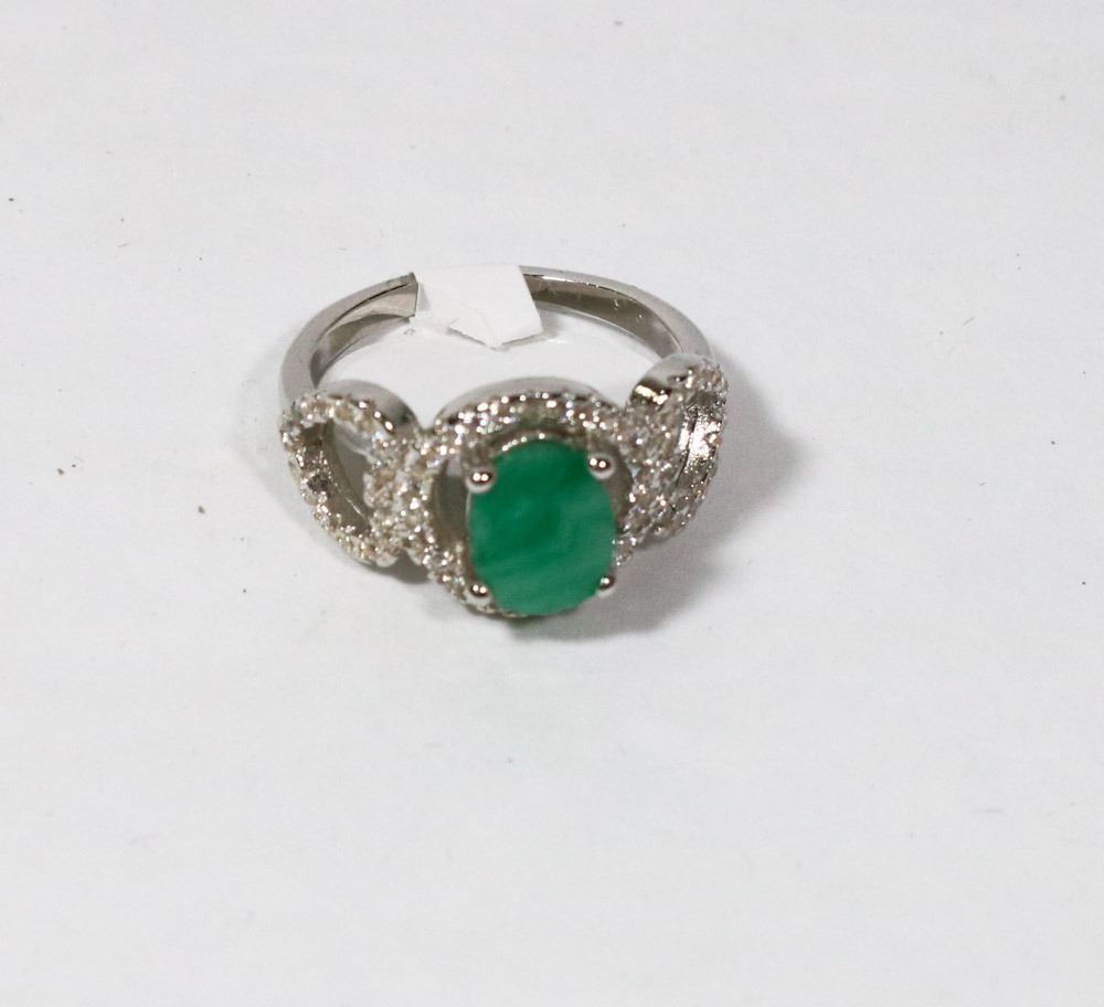 117 - JT52 - STERLING SILVER EMERALD CUBIC ZIRCONIA RING (SIZE 5.5) (~WEIGHT 4G). JEWELRY