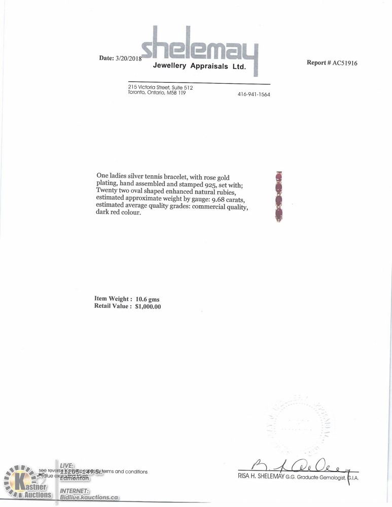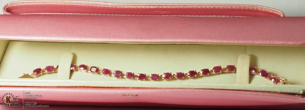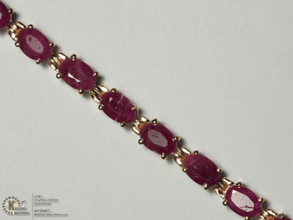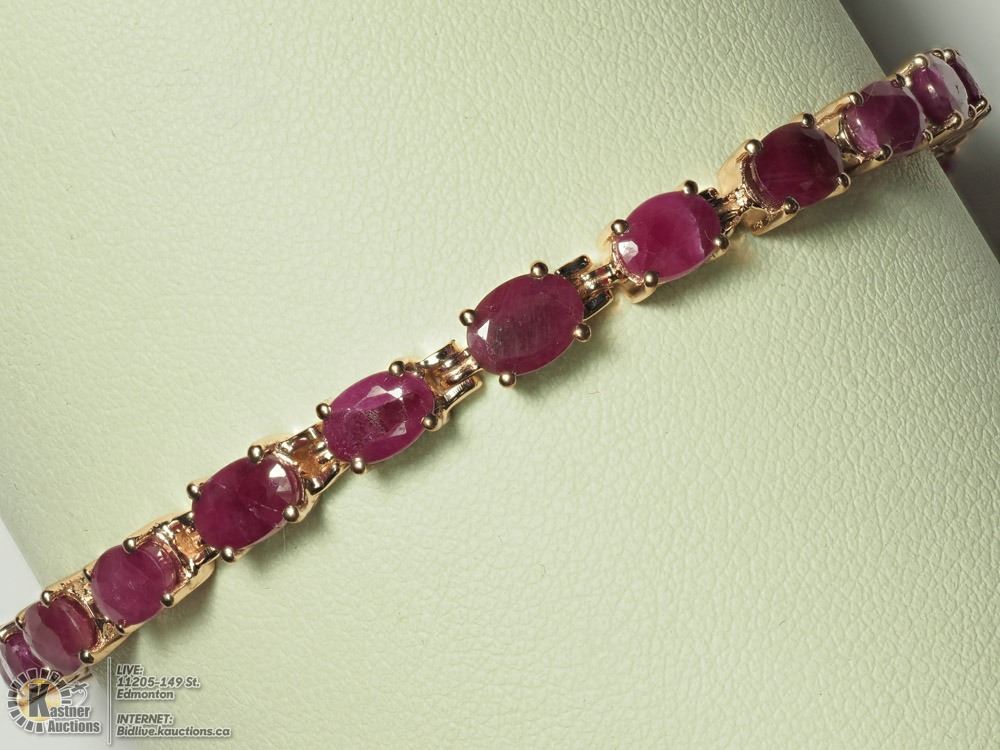 17-JP122 - STERLING SILVER ENHANCED RUBY (9.68CT) BRACELET (10.6G) W/COA. SUGGESTED RETAIL VALUE $1000. JEWELLERY
